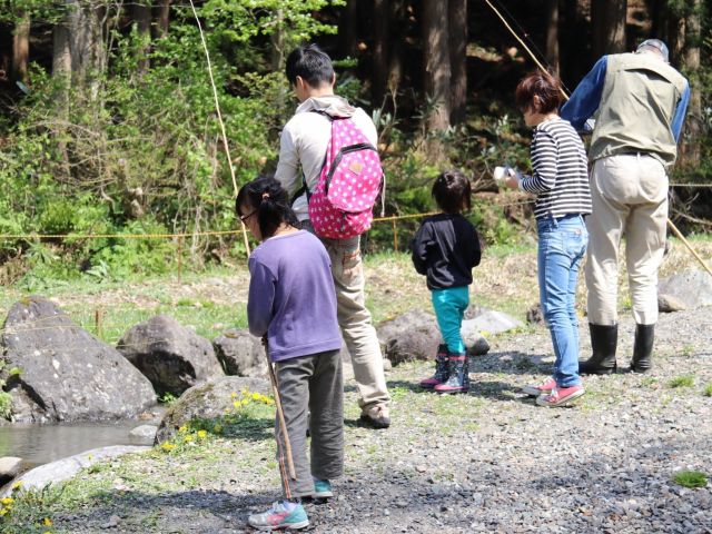どなたでも手軽に魚釣りを体験する事ができる「渓流釣り掘」は、お子様の釣りデビューや家族で楽しむ自然体験としても最適です!