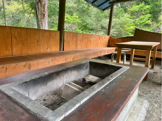 釣りを楽しんだ後は渓流の目の前の屋根付バーベキューハウスでBBQを楽しみましょう!