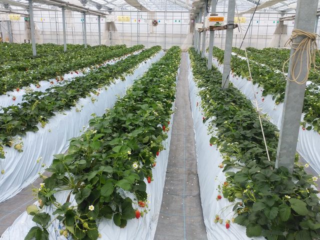 2段の高設栽培になっているので清潔&お子様でも楽に、広いハウスでゆったりといちご狩りをお楽しみいただけます🎵