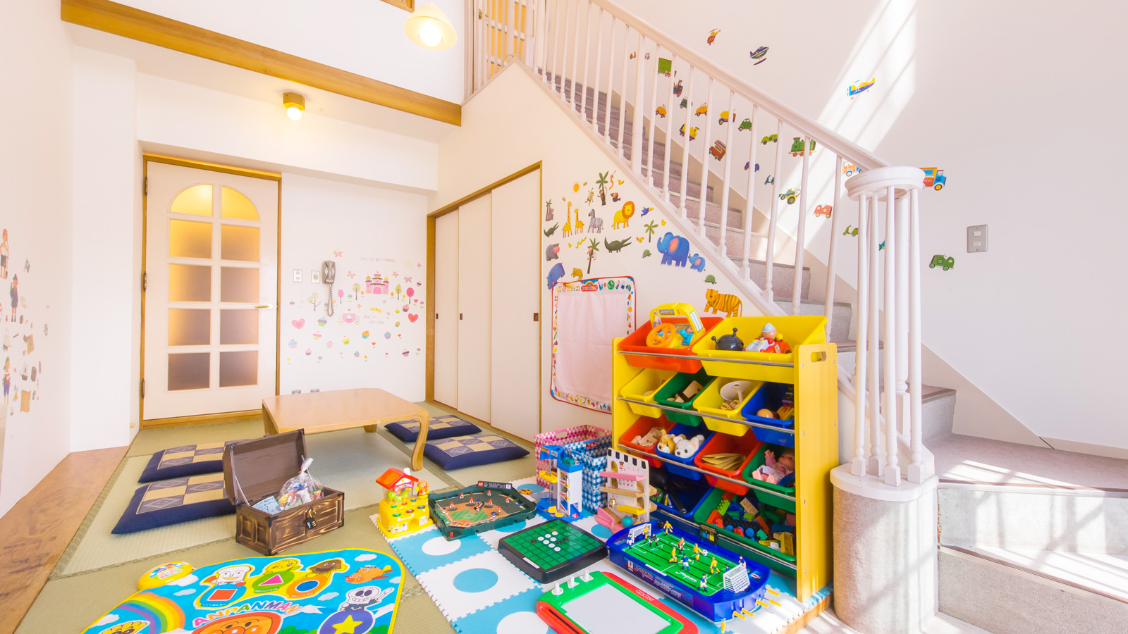 各施設を備えたメイン館のお子様向け「遊べるルーム」は、おもちゃ満載のお子様に人気のメゾネットルーム。