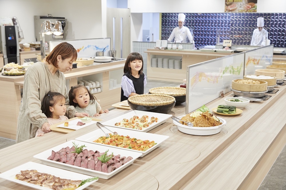 東京湾一望のロケーションで「和・洋・中」60種類以上のバイキングをお子様から大人までお楽しみいただけます。