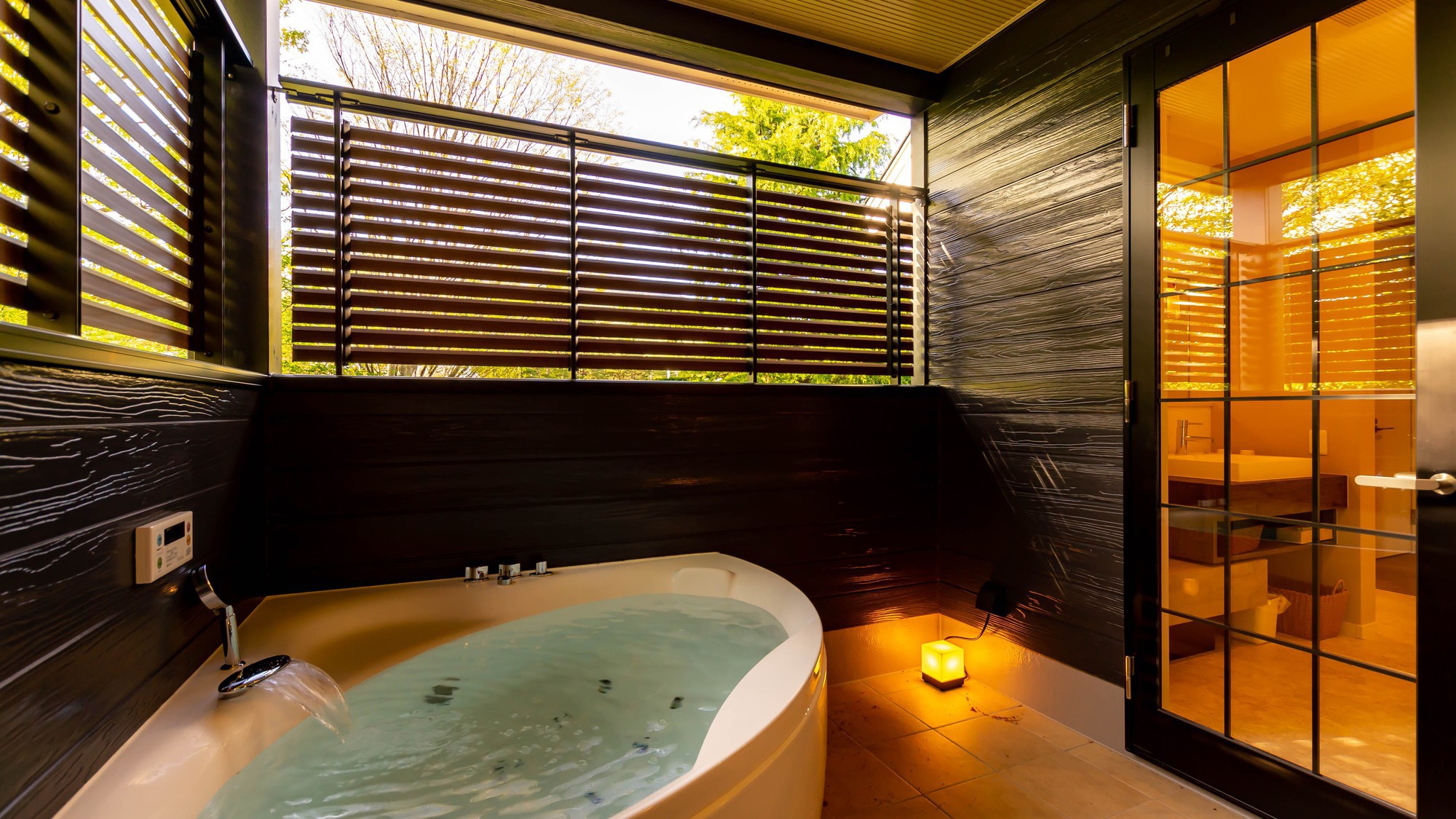 天然温泉(那須ハイランド温泉)の掛け流しの露天風呂と大浴場(内風呂)もご利用いただけます。