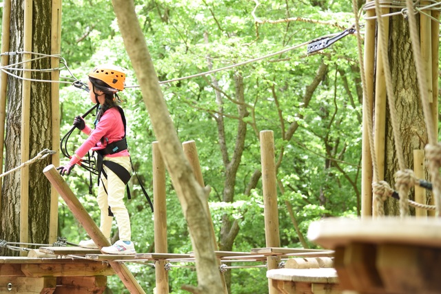 で全14コースがあり、10m以上の高さで遊ぶことができる日本最大級、約25,000㎡の森林を生かしたアスレチックです。