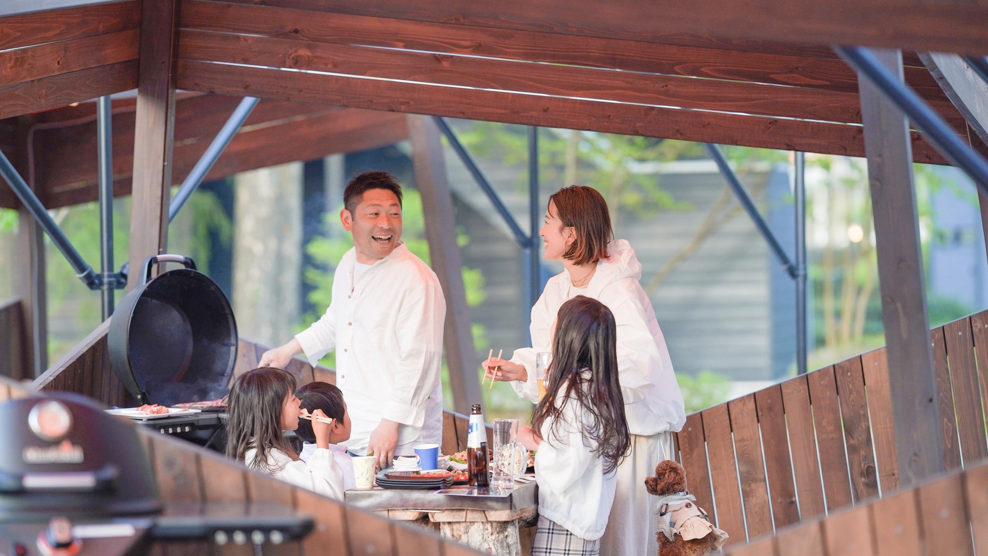 赤外線を活用することでより美味しく調理することができるアメリカ製BBQコンロの「チャーブロイル」を採用するなど、ご家族で本格的なBBQをお楽しみいただけます!