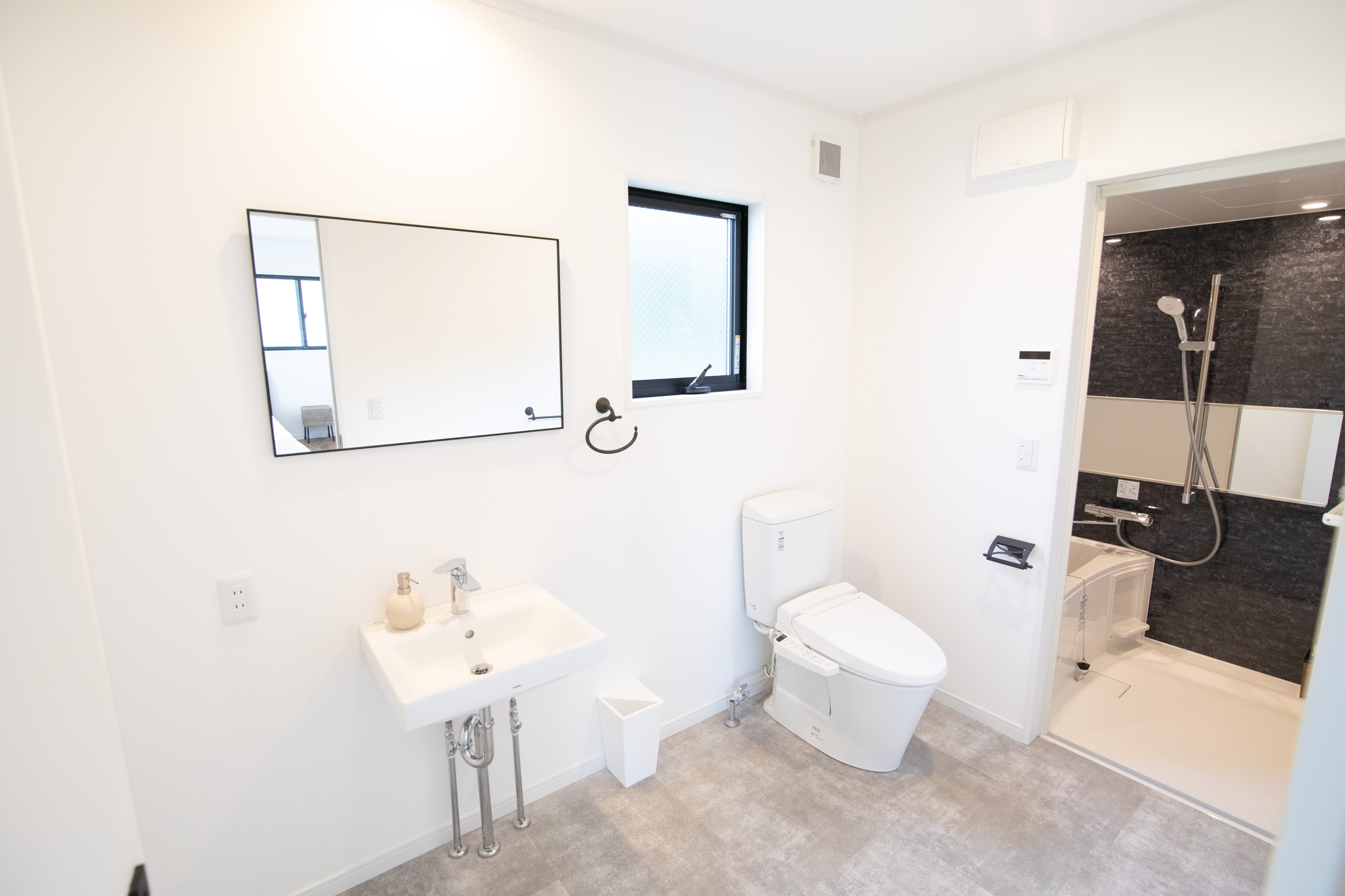 コテージタイプにはバス・トイレを完備、グランピング体験の方は共用シャワー室が設置されています。