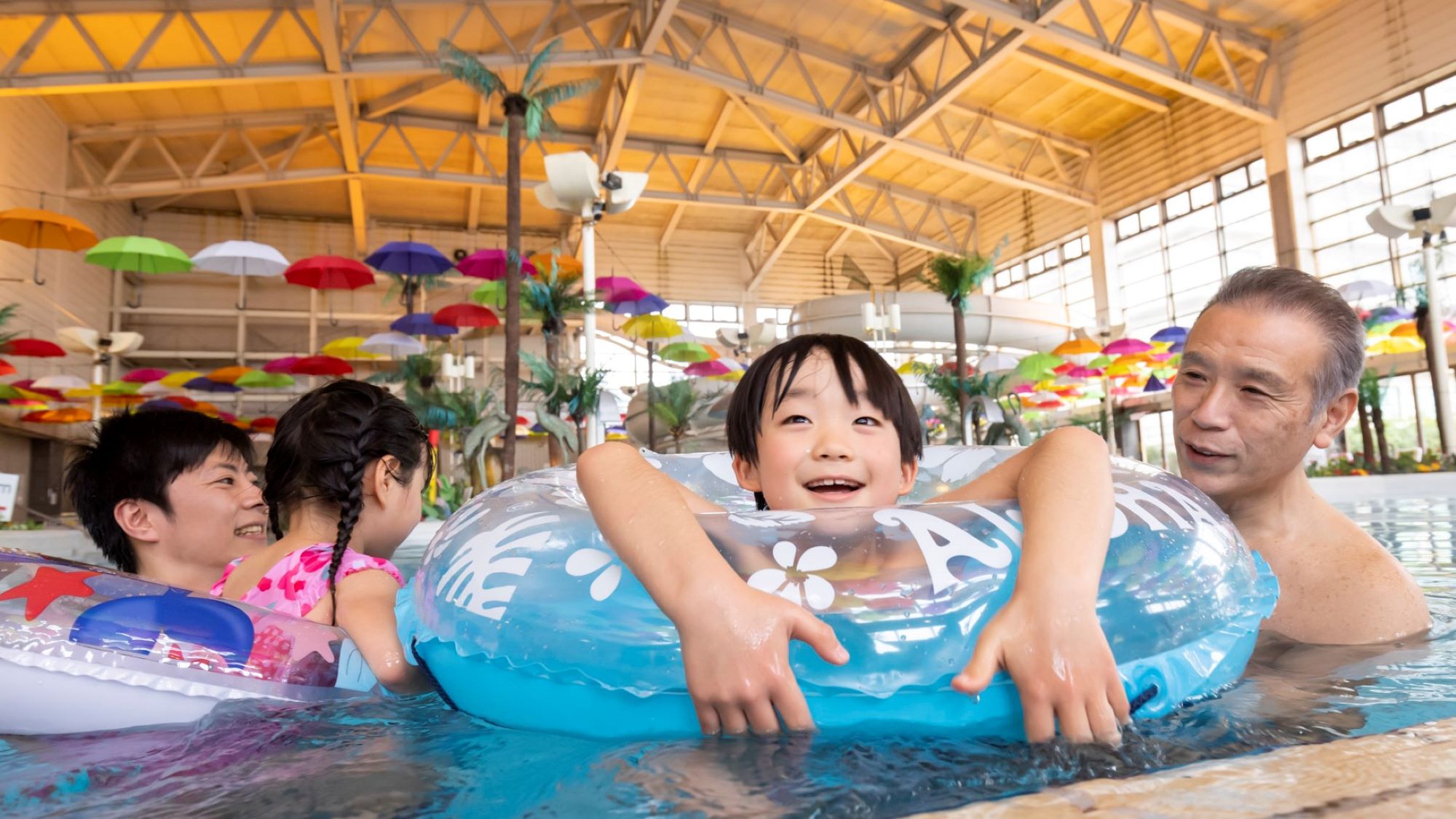 都心から約35分と好立地、1年中遊べる屋内外プールをはじめ、3世代で楽しめるプレイスポットを多数揃え、全室オーシャンビューの温泉テーマパーク「ホテル三日月 龍宮亭」
