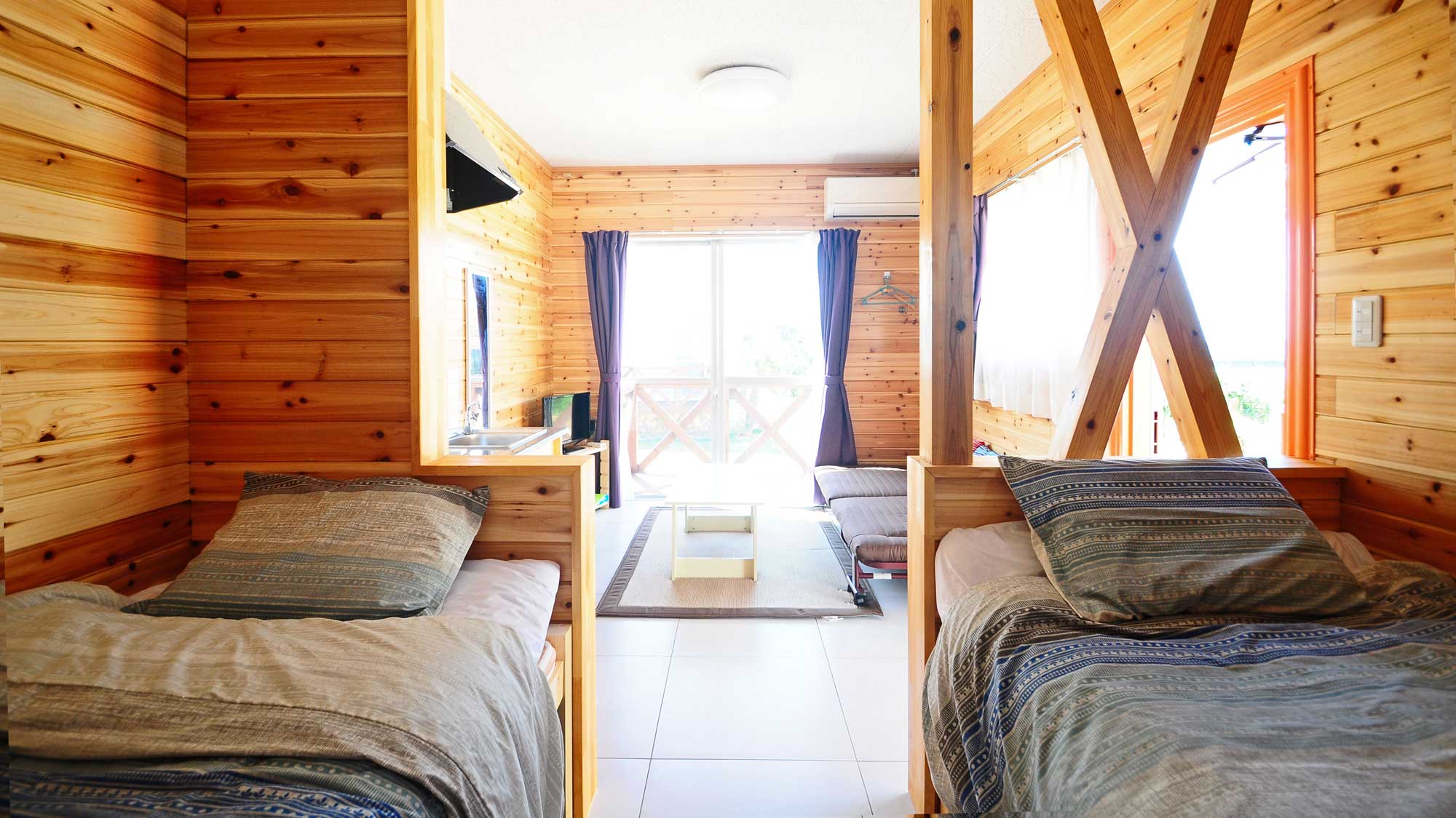 コテージタイプは、ツインベッドコテージが2棟、フォースベッドコテージが1棟の全3棟となります。