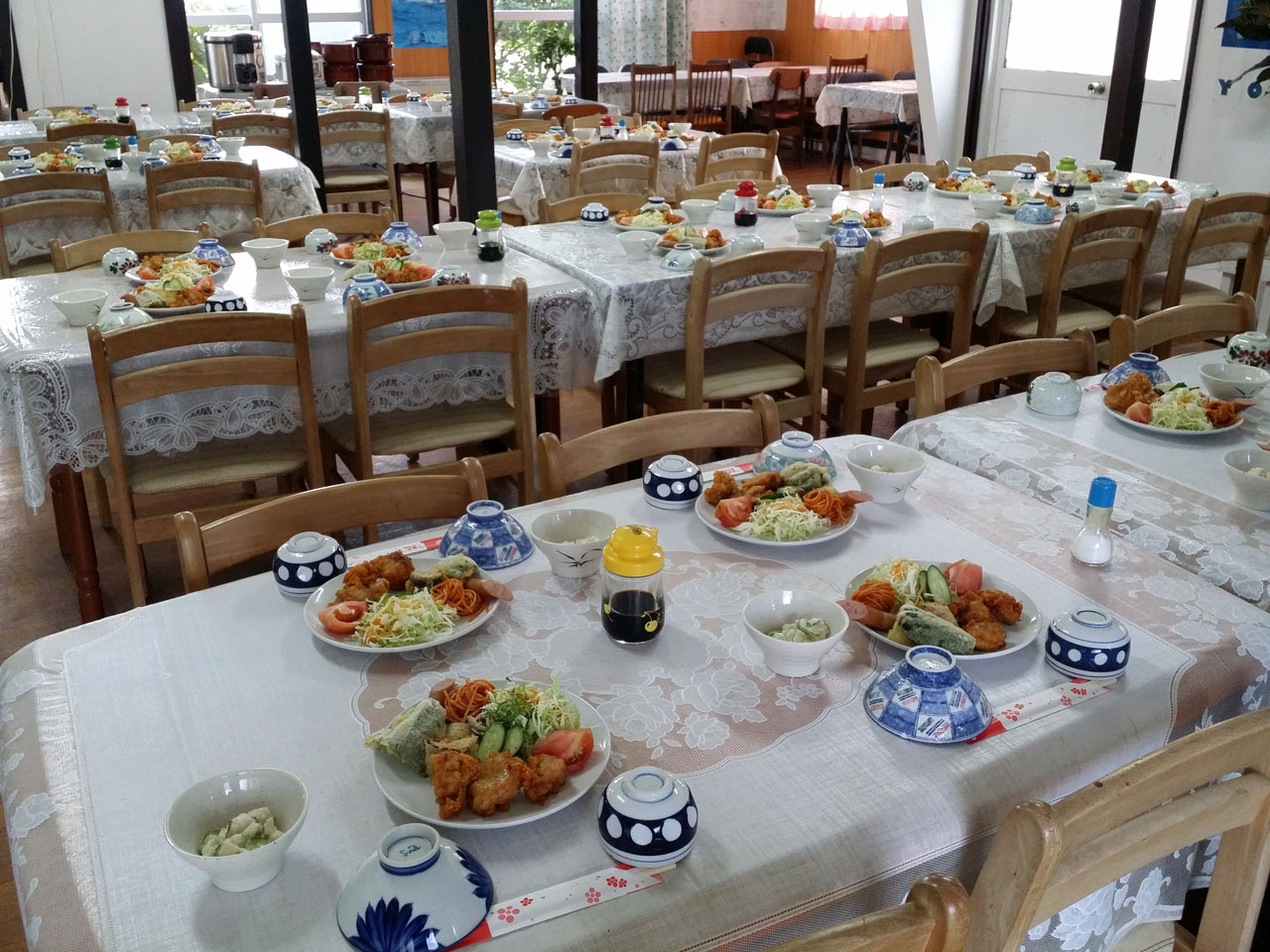 周辺に飲食店はありませんが、宿の食堂でのご飯が美味しいと大変好評です🎵