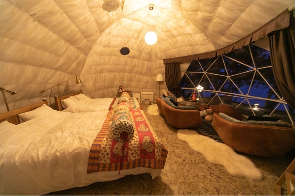 ドームテントには部屋着、アメニティ、備品等も充実し、冷暖房完備なので季節問わず快適に滞在することができます!