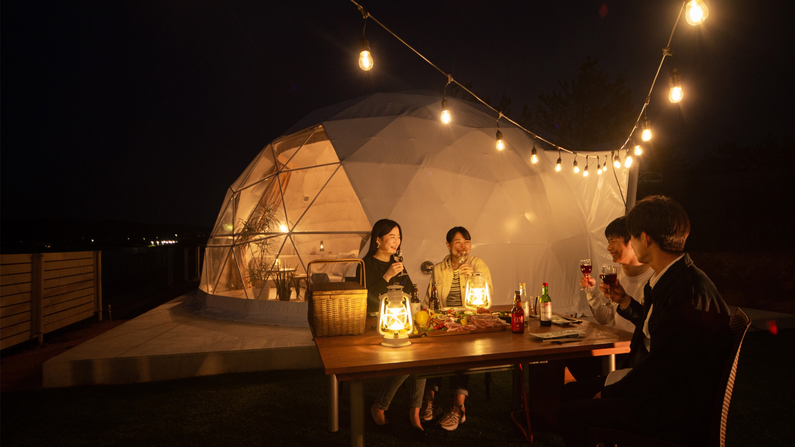 - ホテル客室も付帯した贅沢なグランピングを楽しめる