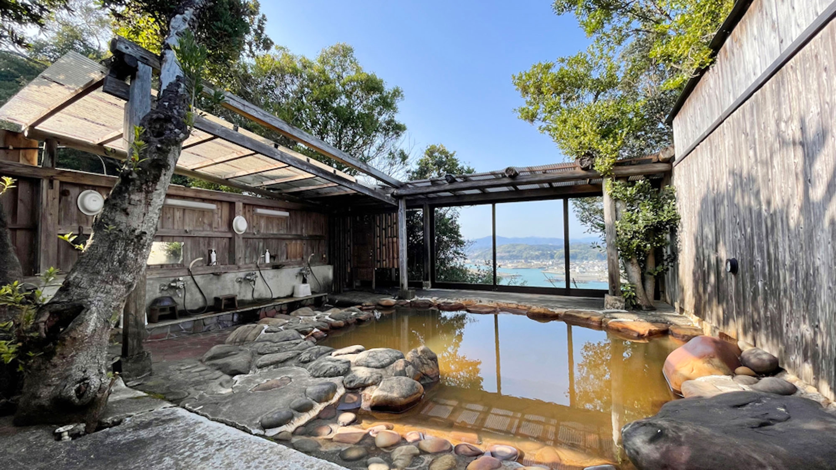 施設内には源泉掛流しの露天風呂と貸切風呂(要予約)があり、ご家族連れの方からカップルなど、全ての湯船から、四万十川と太平洋を同時に望む事ができる絶景の秘湯をプライベートな環境でお楽しみ頂くことも!