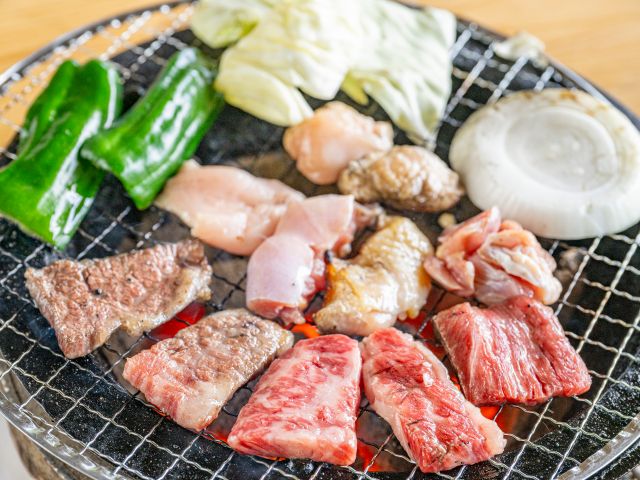 (牛、豚、鶏計270g/焼き野菜(季節による)/おにぎり)