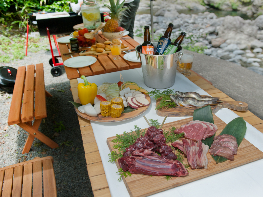 - 川辺の解放的な空間でBBQを楽しむことができる