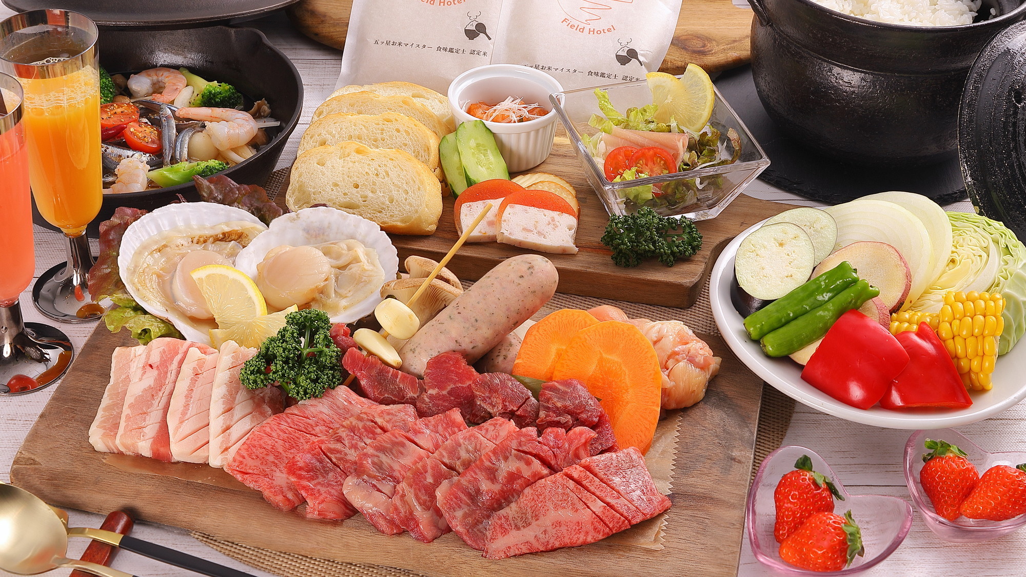 夕食にはフレンチシェフ黒岩氏による今までにないフォークとナイフでいただく最も贅沢なバーベキューを頂くことができます。