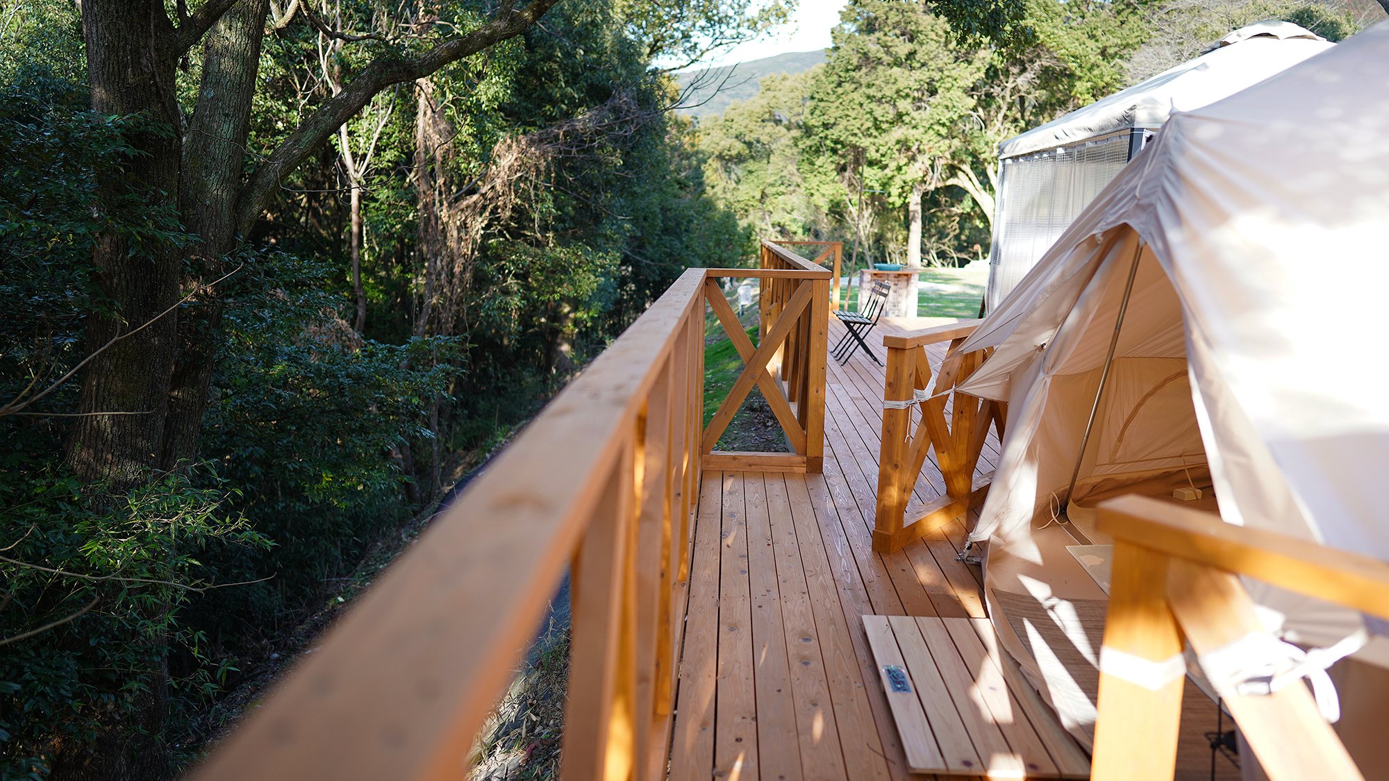 橘湾を望む雲仙中腹に広がるグランピングの森・COCOHARE(ココハレ)