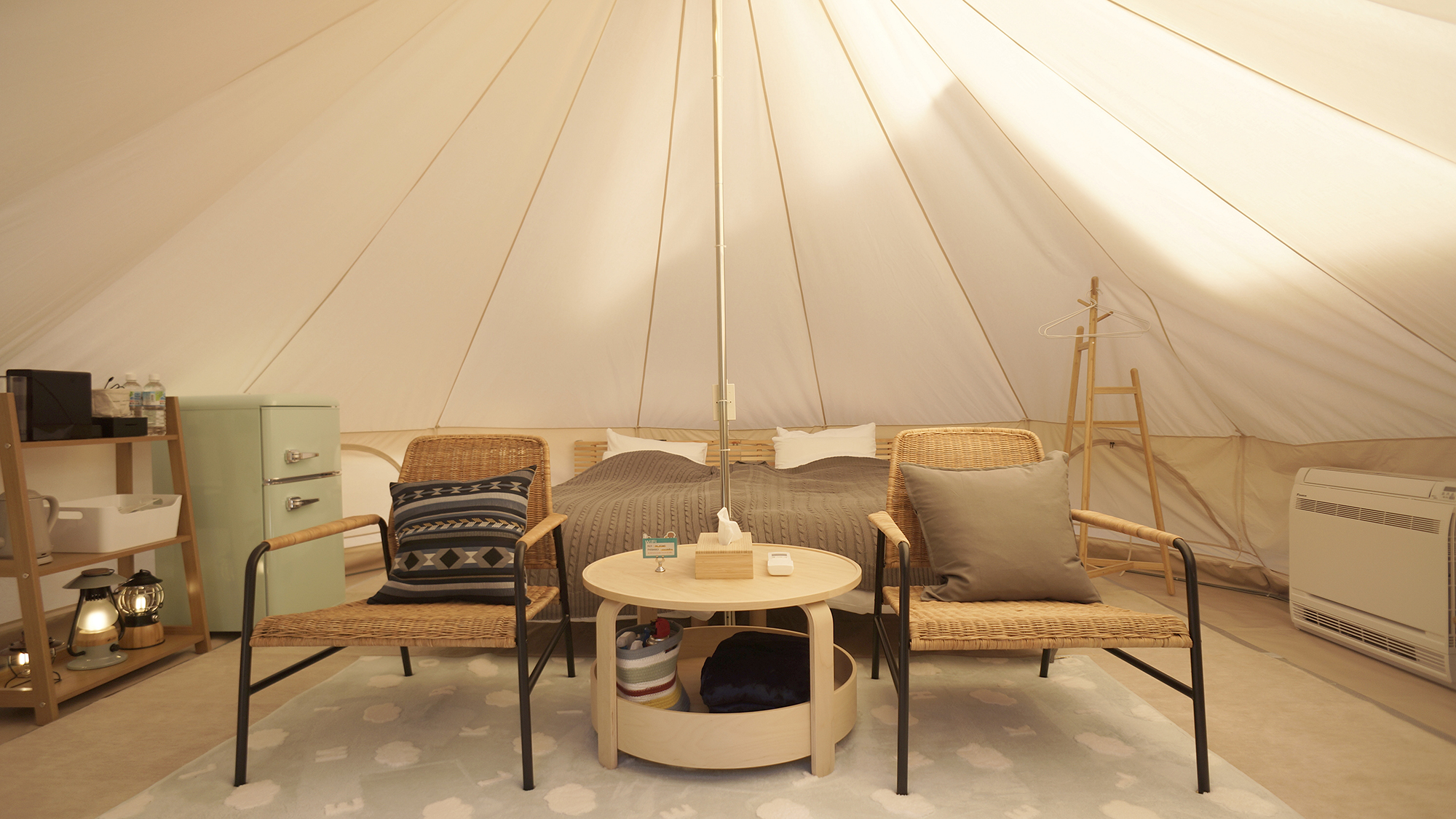 テントは冷暖房完備、源泉かけ流し露天風呂はもちろん、食事スペースやトイレなど、宿泊に必要な物は全てプライベートルームに揃っているので他の宿泊客と出会うことなくプライベートな時間を過ごすことができます!