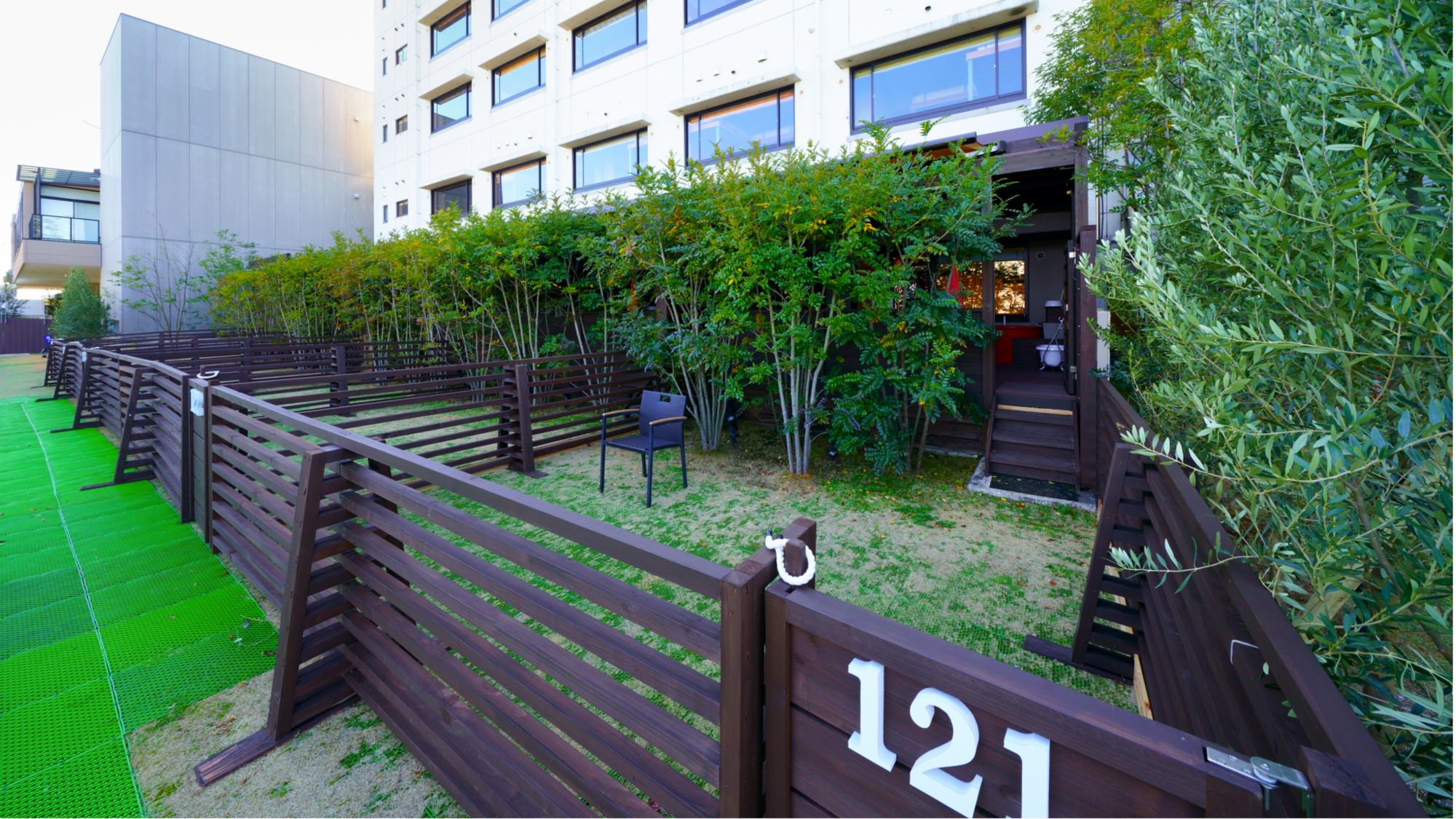 スイートグランピング各棟は、塀で囲われていて入り口ドアに鍵がかけられるので、中に入れば外から中が見えることができない完全プライベート空間を確保した贅沢な仕様となっています!