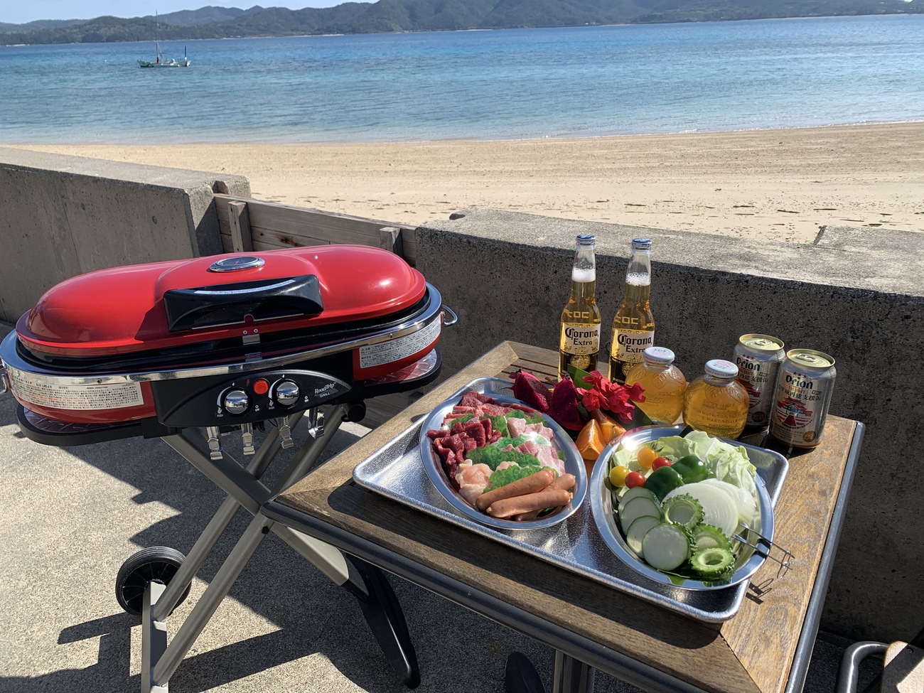 お食事はテラス席にて、海を見渡し潮風を感じながらのBBQとなります。