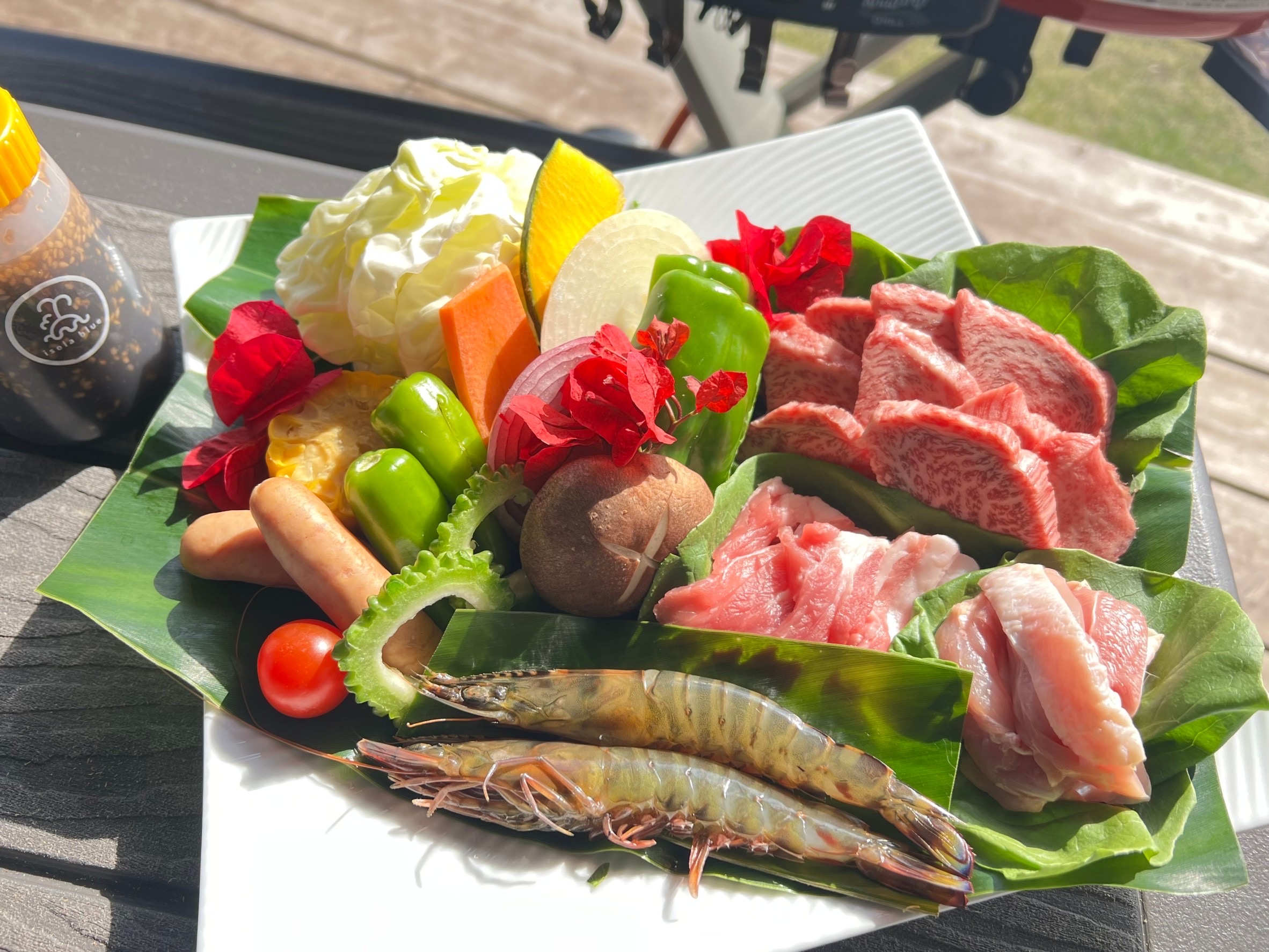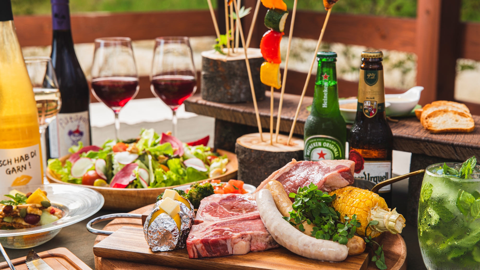 お食事は屋外での豪華BBQや、お部屋のキッチンにて調理して頂くクッキングスタイルとなり当日、食材・食器類等をセットしたBOXで提供。
