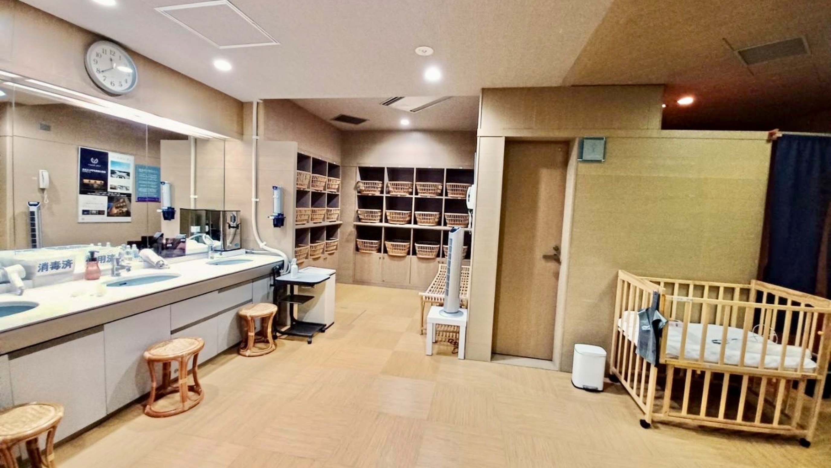 大浴場脱衣所にはベビーベッドを設置しているので安心!