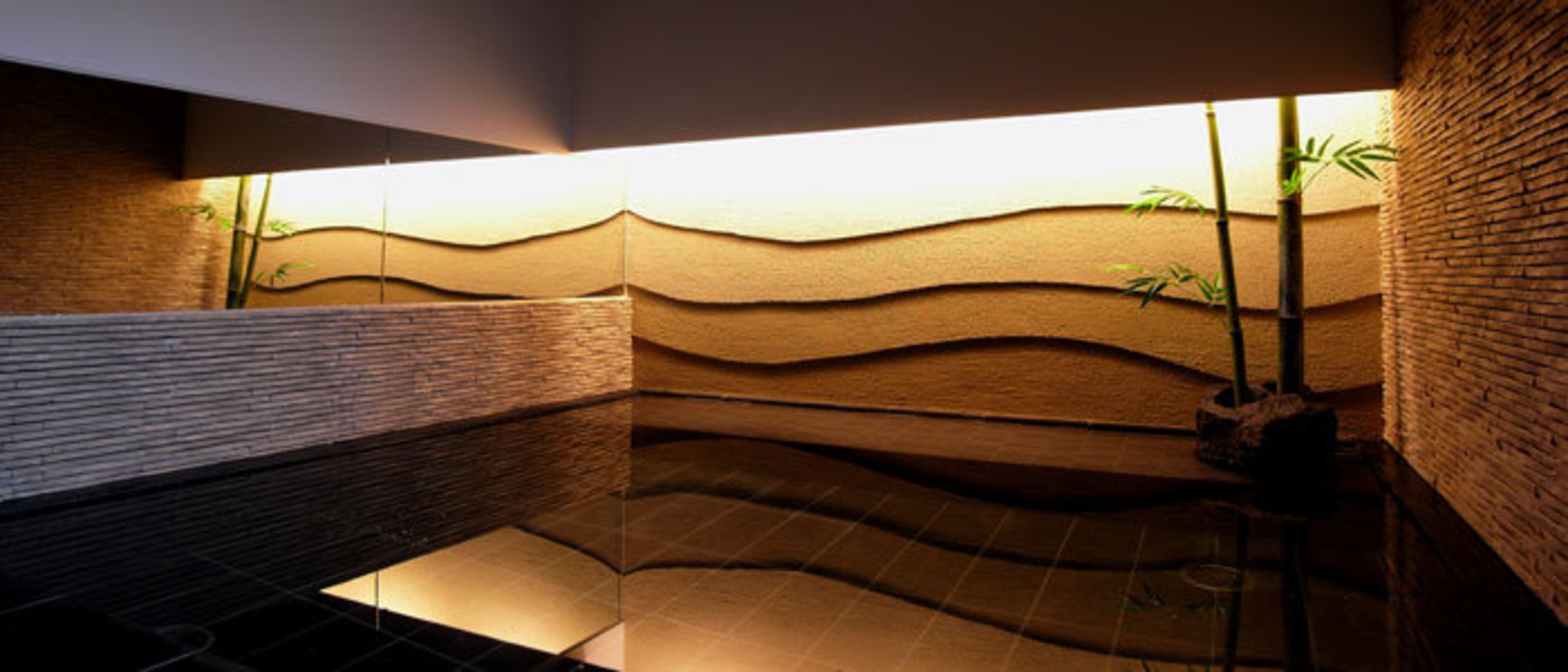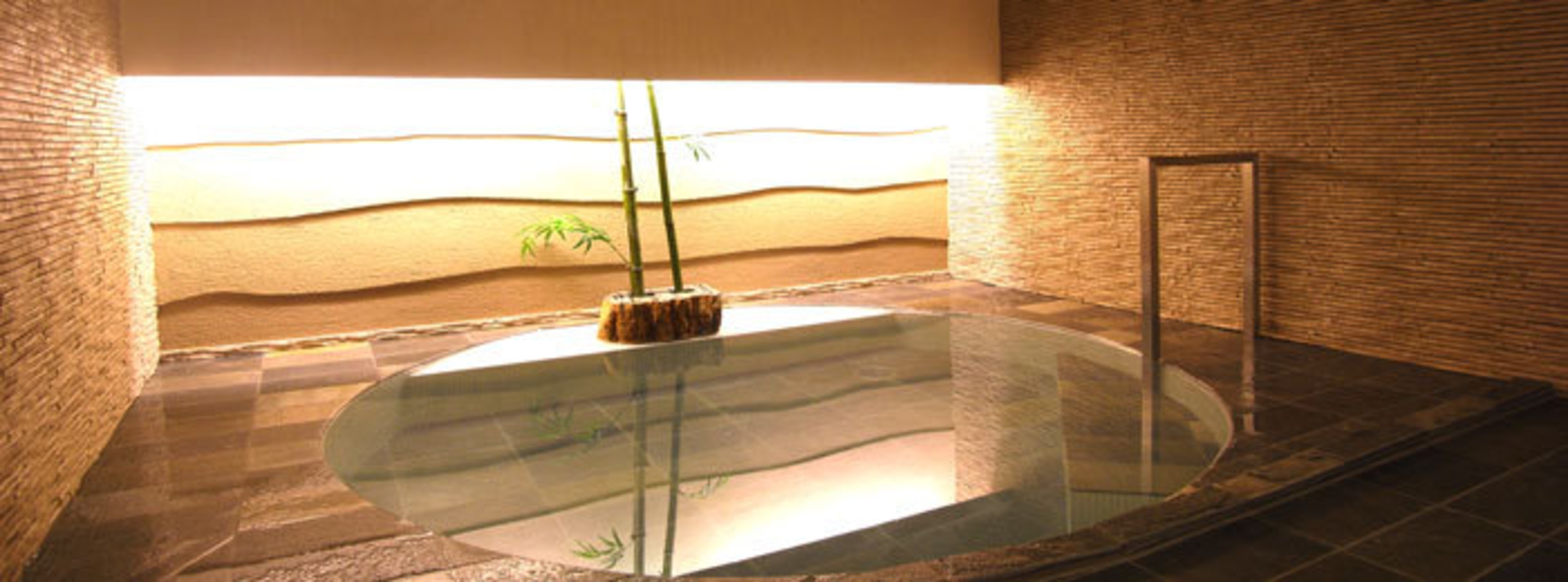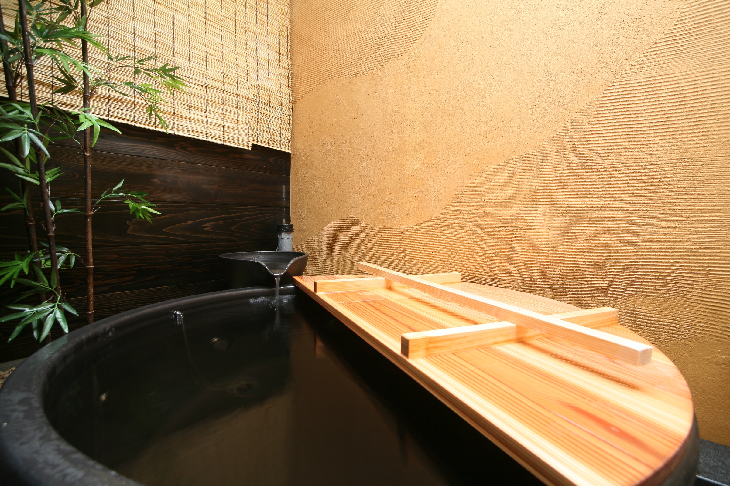 銀引きの鏡と灯りが織りなす光と影の空間で、アロマと潮の香がほのかに香る香住温泉のお湯を24時間楽しむことができ、露天風呂、陶器風呂も完備しています!