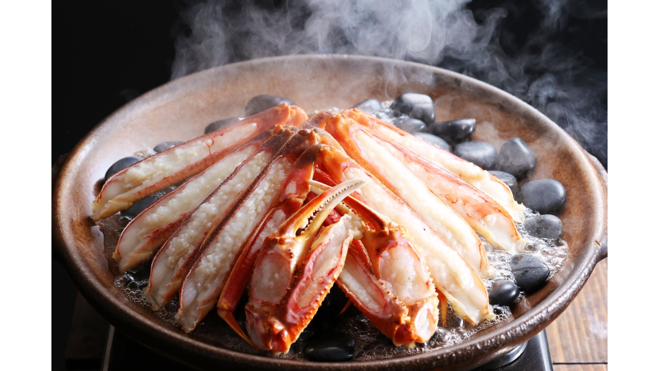 冬の旅で是非味わっていただきたいのが「柴山ガニ」を使用したフルコース。