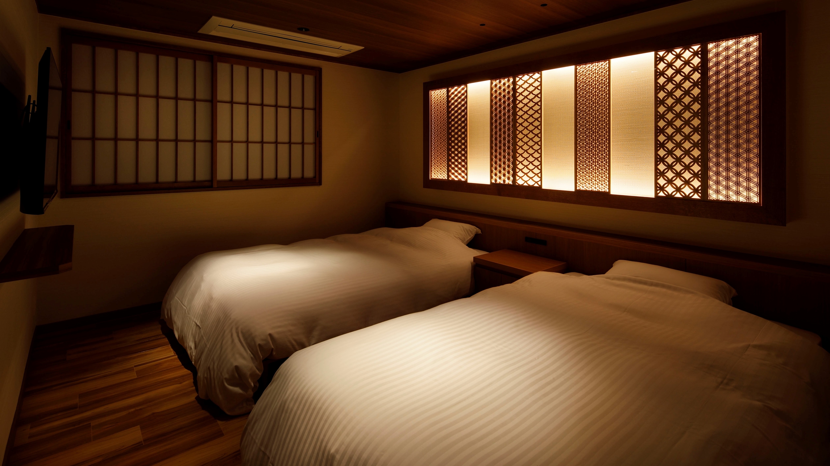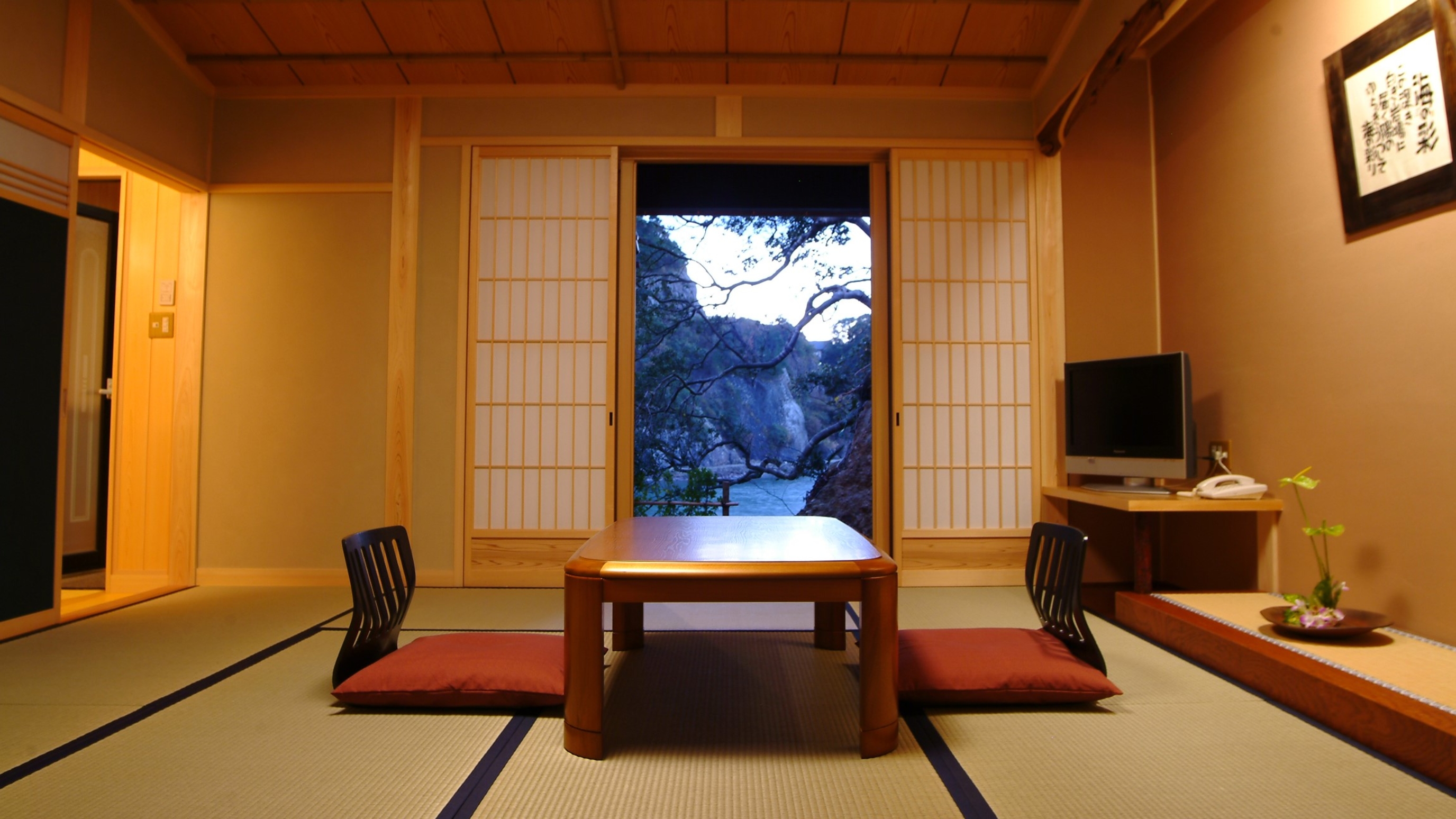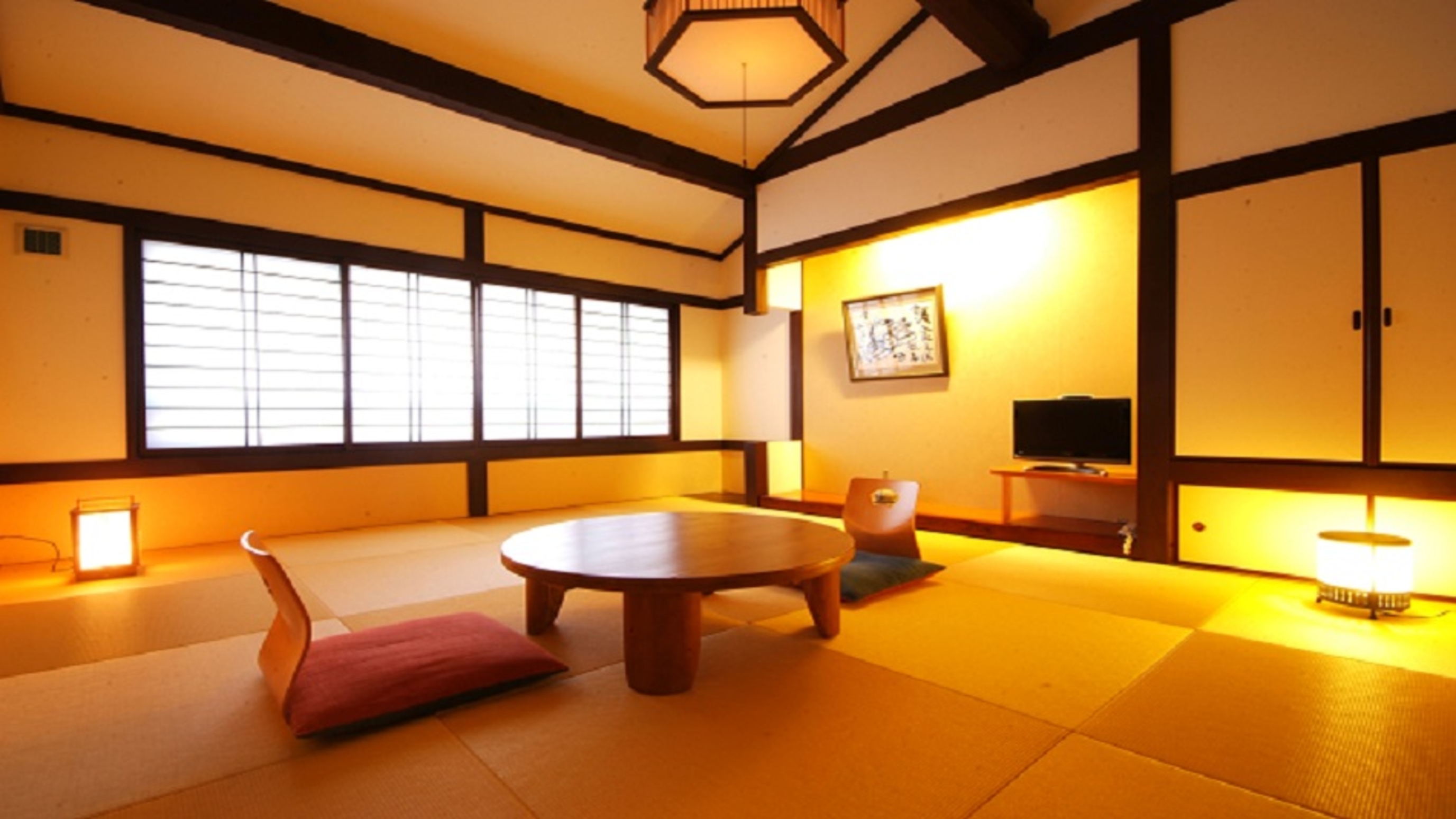 8~10畳の一般客室は広いお部屋に和のしつらえ、落ち着いたやわらかな間接照明に照らし出される空間でゆっくりとおくつろぎいただけます。
