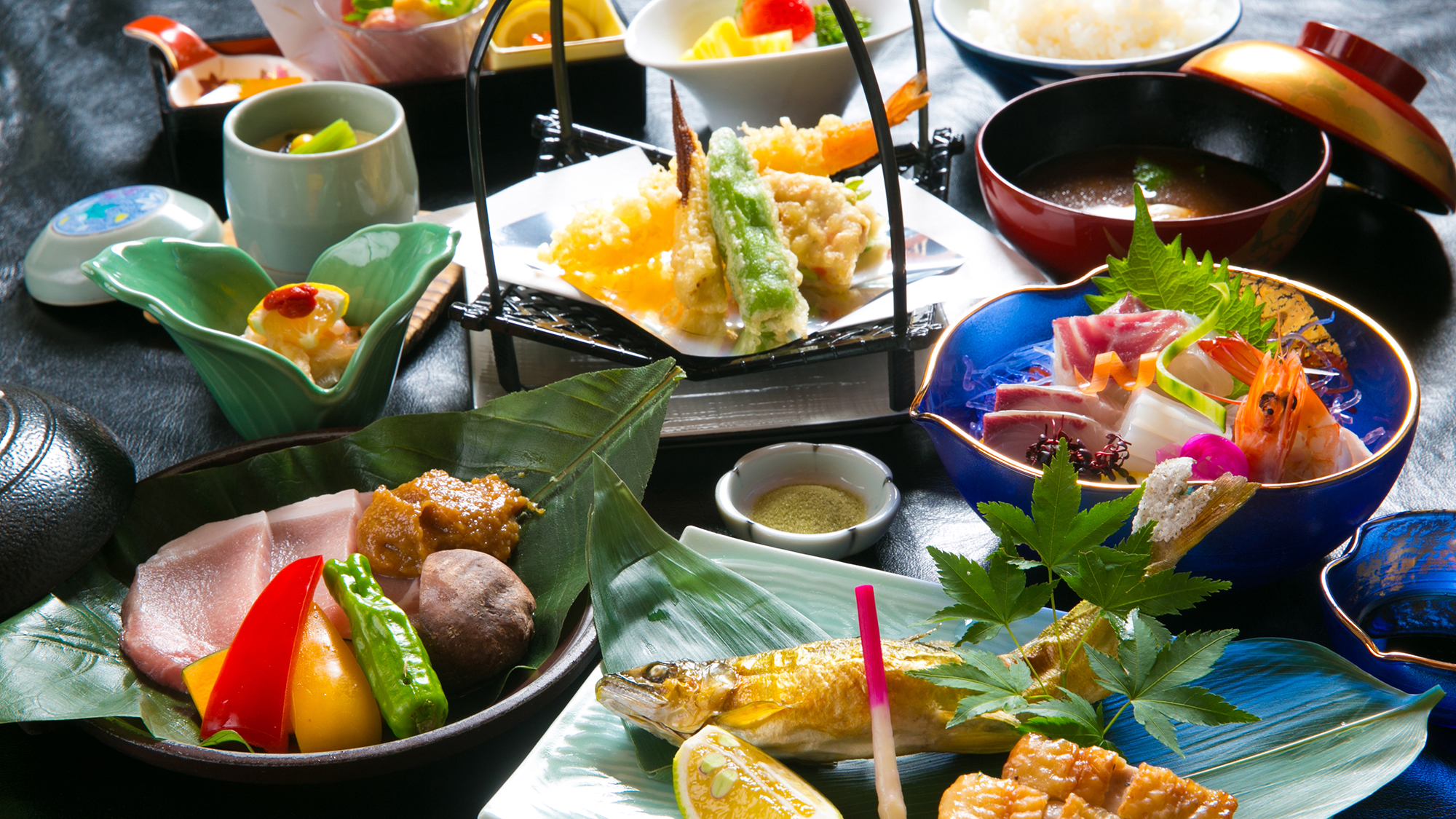 豊後水道の荒波でもまれ育った美味な食材を中心に、大分県の豊かな土地で育まれた 旬の野菜や果物を使用した自慢の料理です。