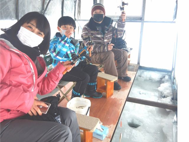 農業用のビニールハウスを改良した小屋の中で冬でも昼間はポカポカで快適なワカサギ釣りを楽しむことができます🎵