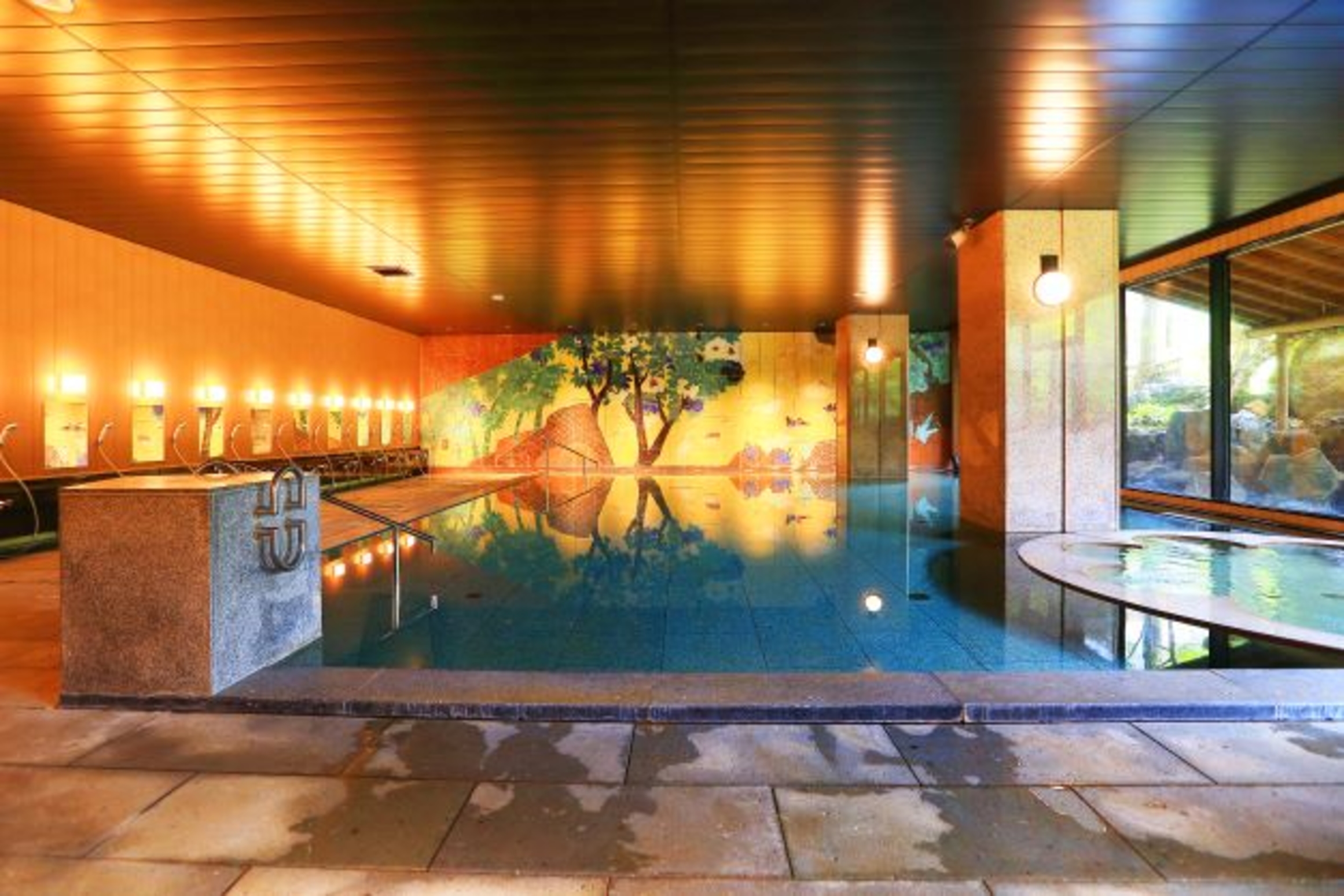 泉質は肌に優しい弱アルカリ性で、大浴場と露天風呂のやさしい源泉の香りとサウナでゆっくりとお寛ぎください。