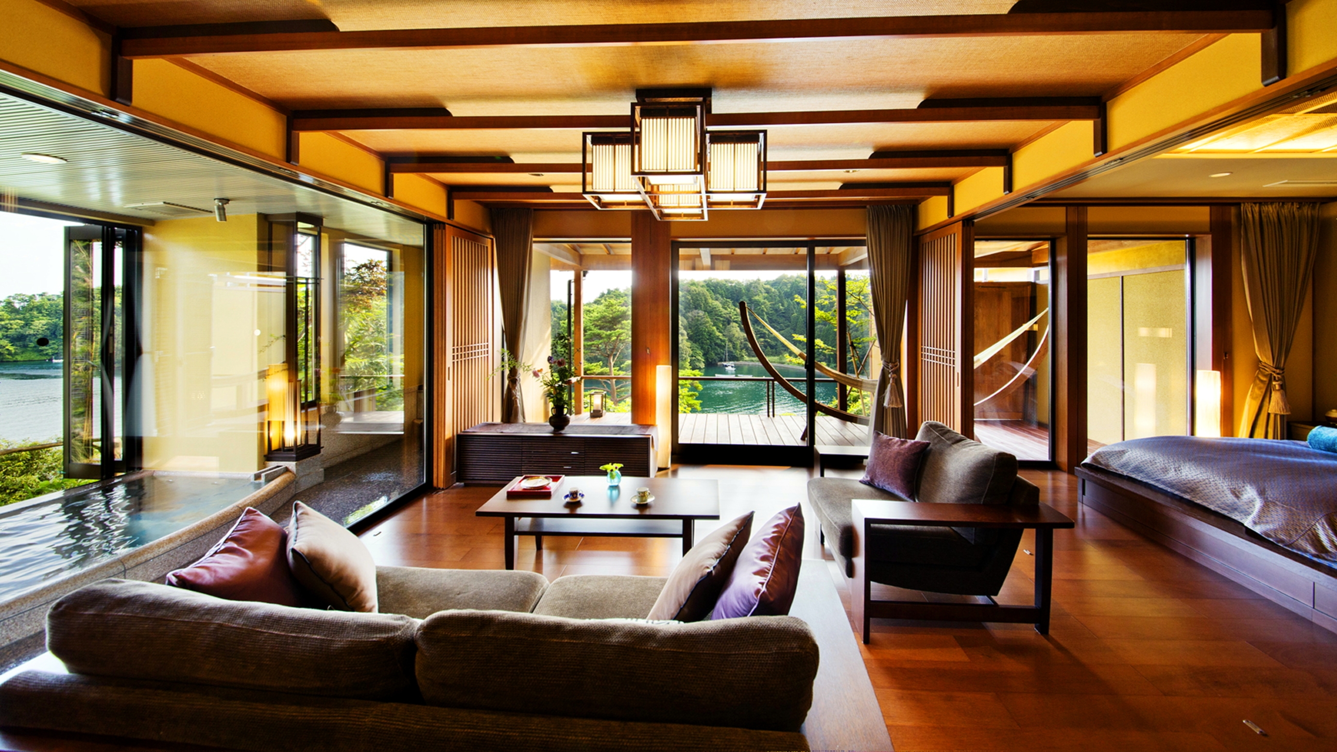 総部屋数60室のうち、海際の貴賓室 「利久」は全12室。
