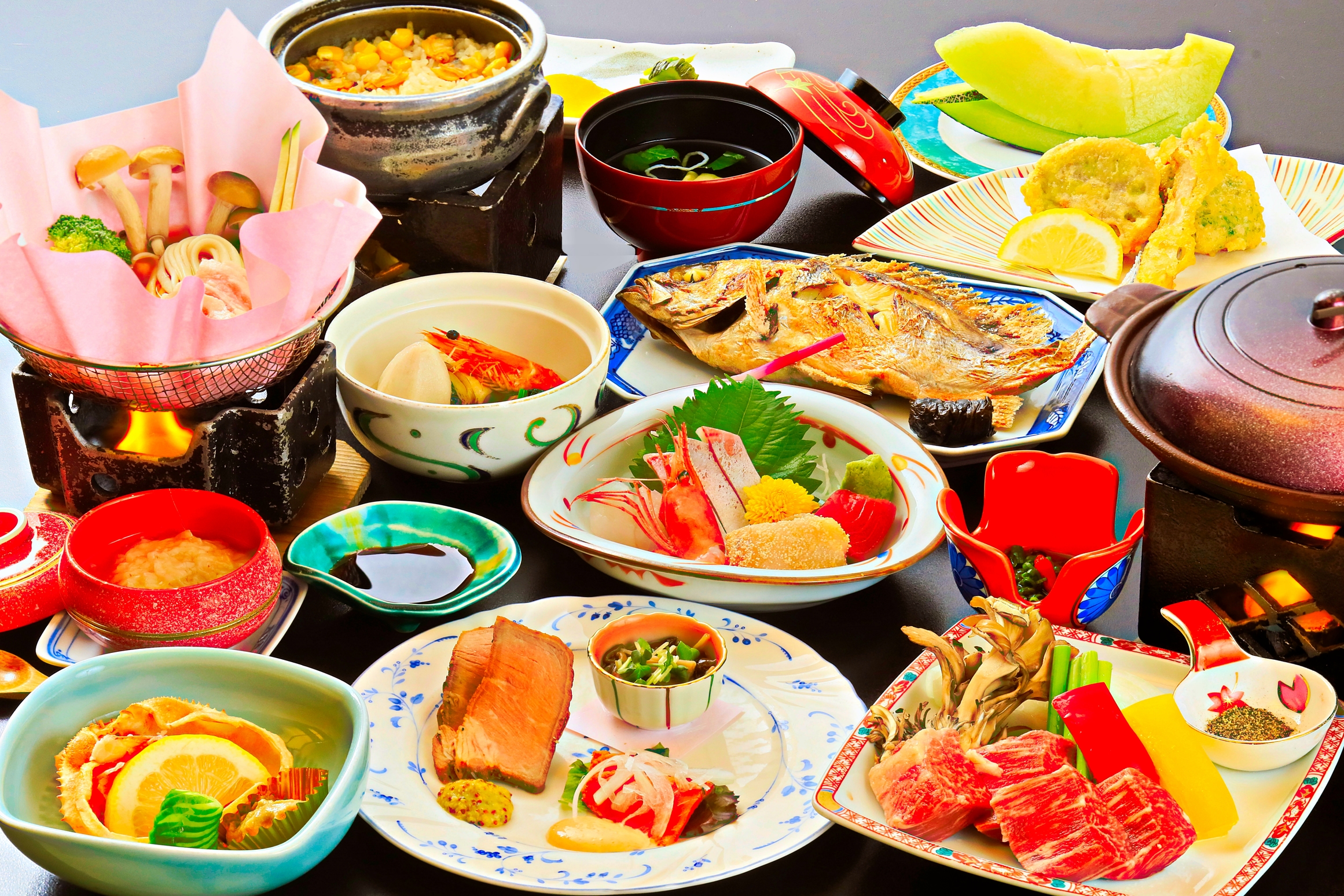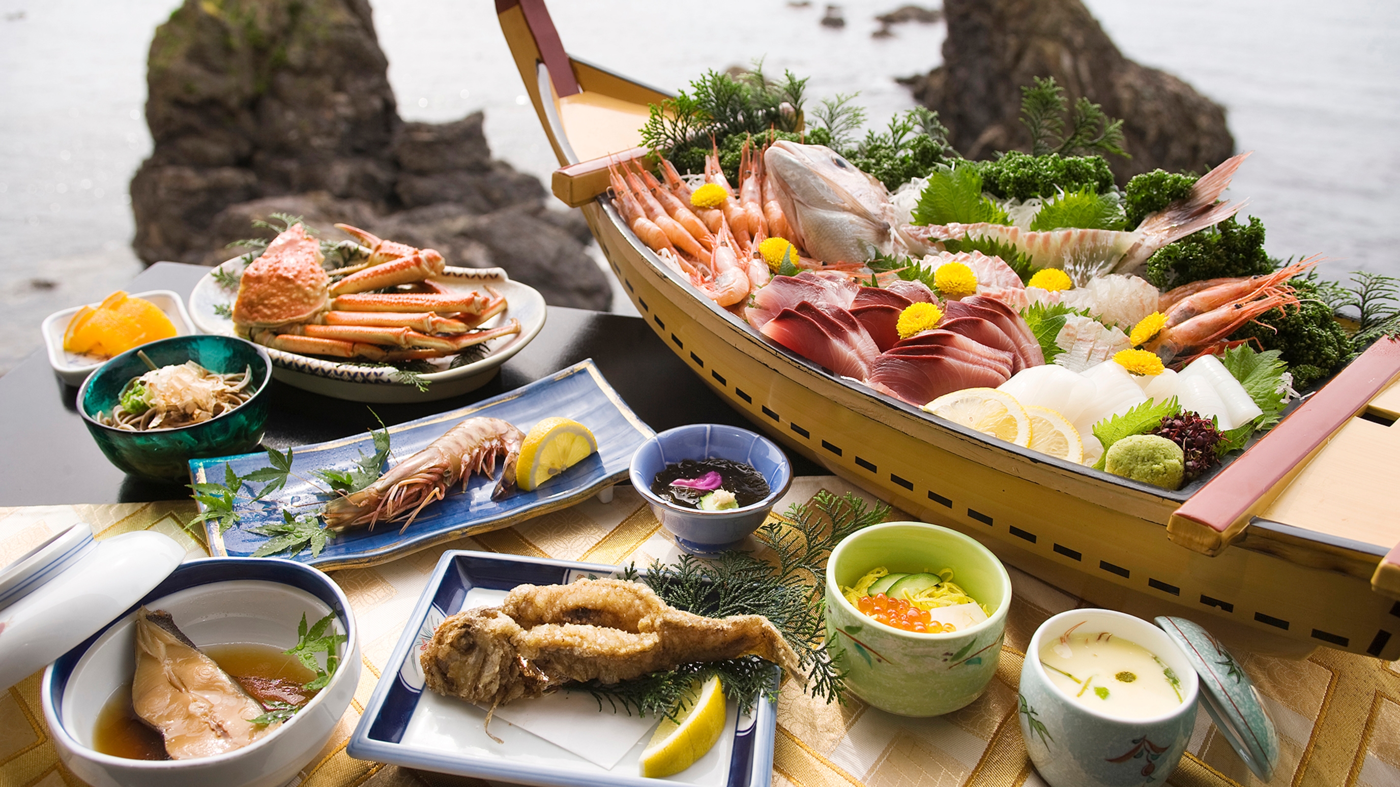 海鮮、能登牛、地場の米、野菜など、能登の里山と里海が育んだ旬の幸。