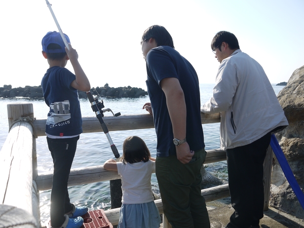 宿目の前の岸壁からはお子様でも小鯛、アジ、カワハギなど魚を釣ってを楽しむことができます!