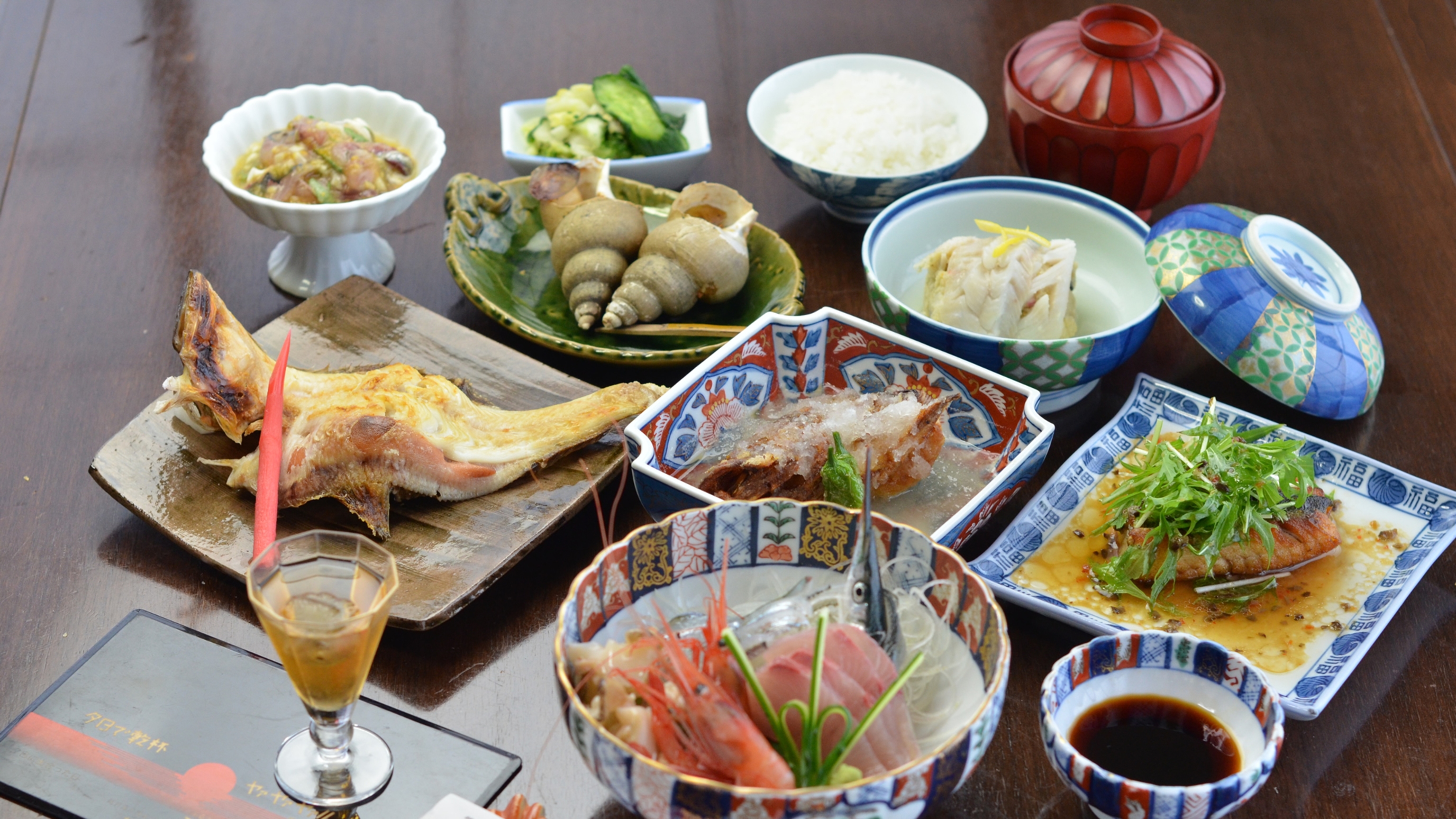 お食事は日本海の氷見港から揚がった海の幸と季節の山の幸を使った会席料理。