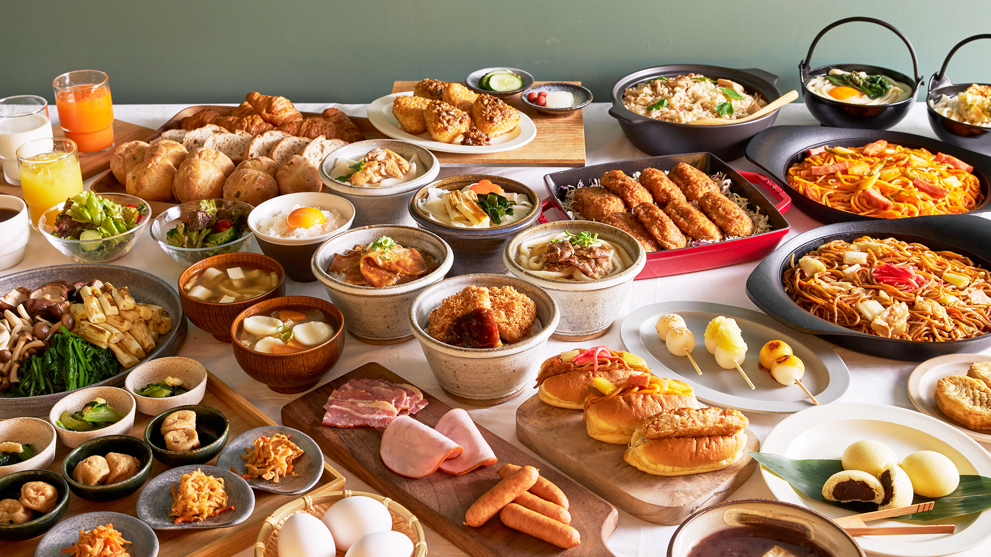 朝食は、地元食材やご当地グルメが楽しめる和洋ビュッフェで、大人も子どももおいしくいただけます🎵