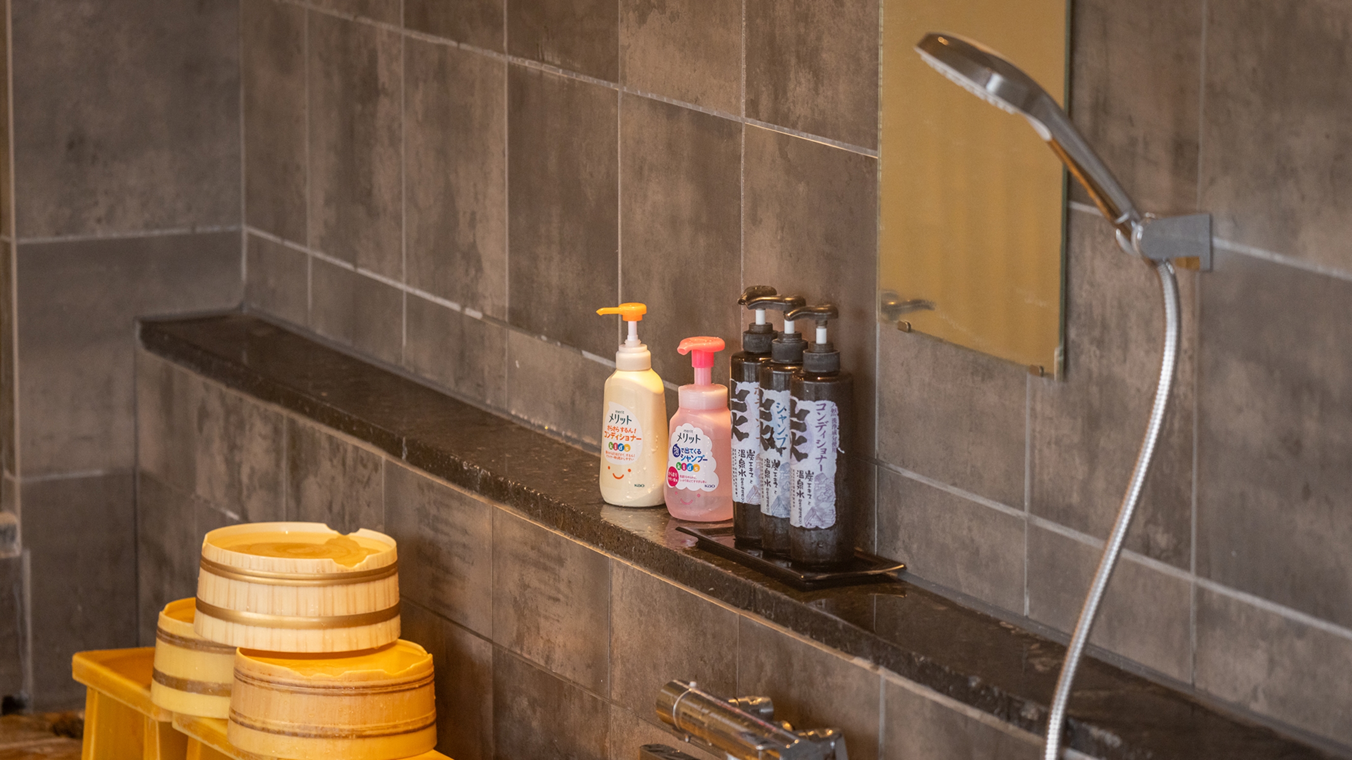 展望大浴場、展望露天風呂の他、ロビー奥に貸切家族風呂があり、子供用のソープ類もご用意!