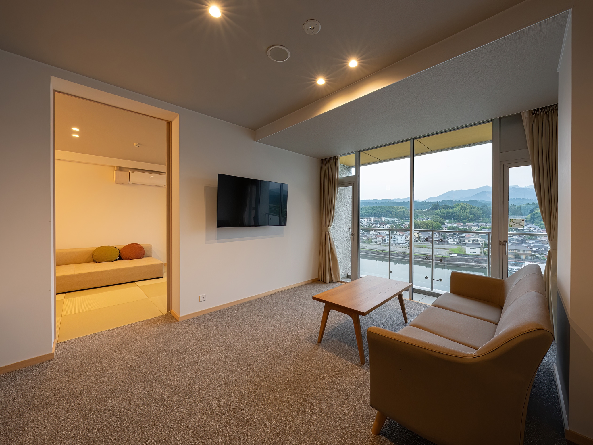 また、ホテルの目の前には、九州最大の筑後川(三隈川)が流れており、全室リバービューの癒し空間。