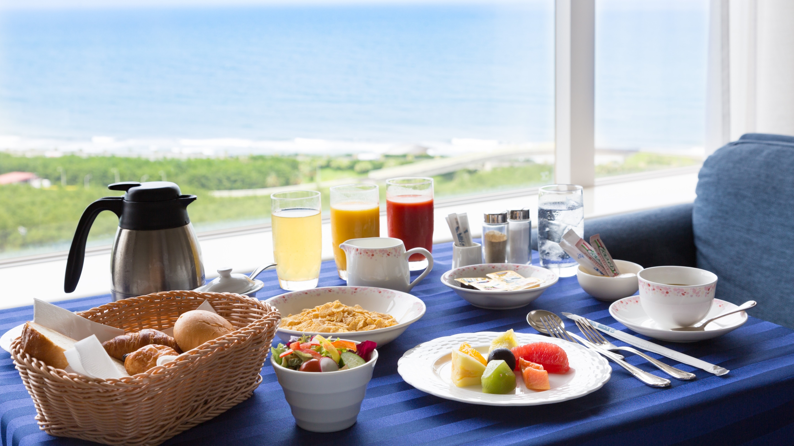 約50種類もの料理が並ぶ和洋ビュッフェでのご朝食の他に、専用プランではお部屋でのご朝食もお選びいただけます。