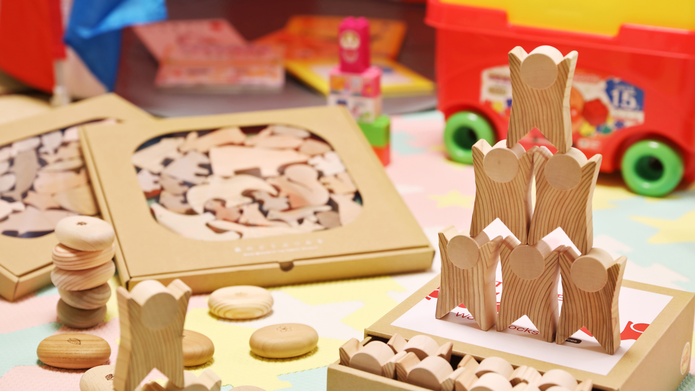 また、お子様が退屈されないよう、ぎふの木のおもちゃやブロック、絵本もご用意していますので、ご家族でごゆっくりお過ごしいただけます!
