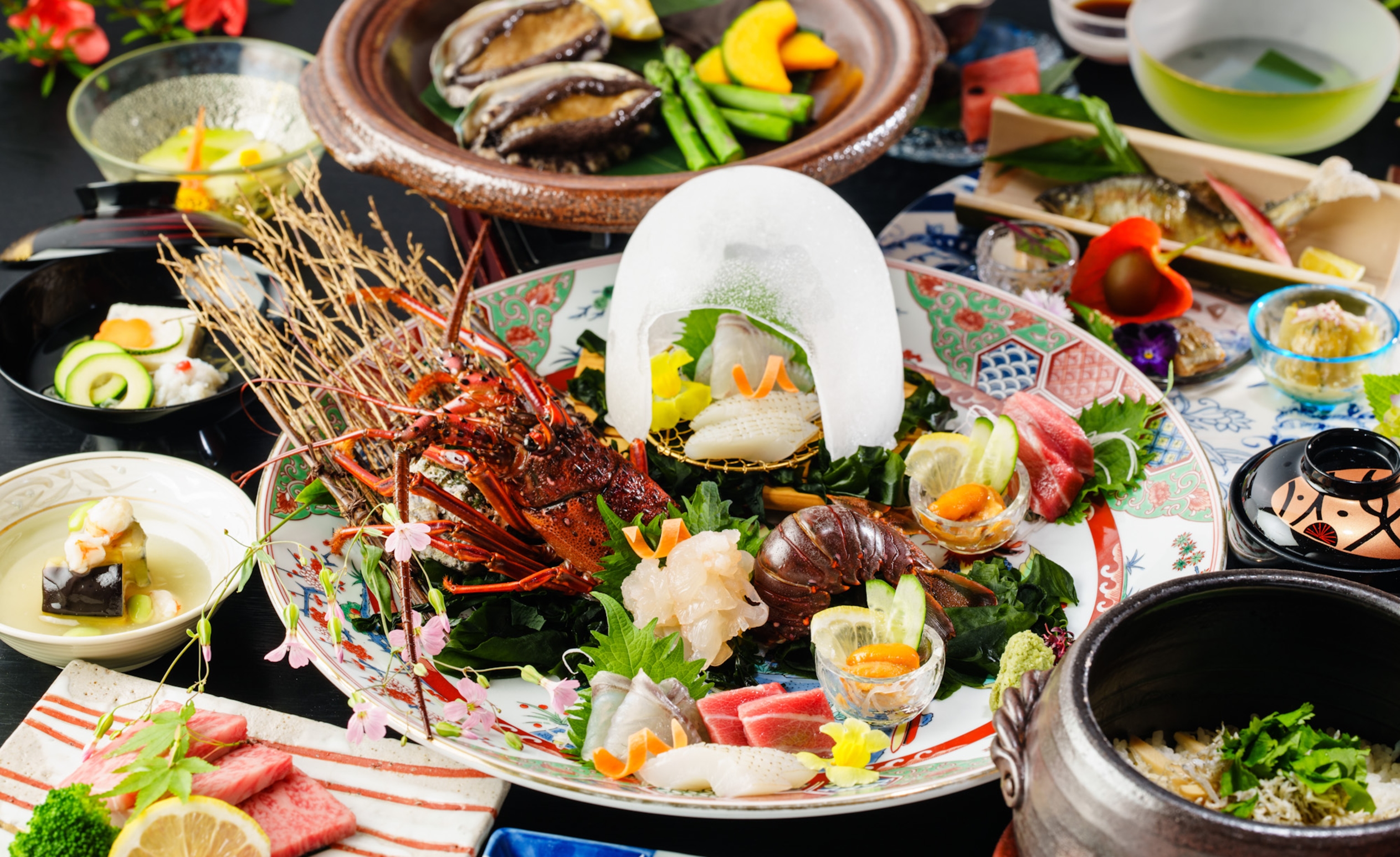 お食事は、湯郷温泉ならではの、山の幸と海の幸ををふんだんに織り込み完成させた会席料理を中心に、健康食料理や薬酒といったオリジナル献立をご用意!