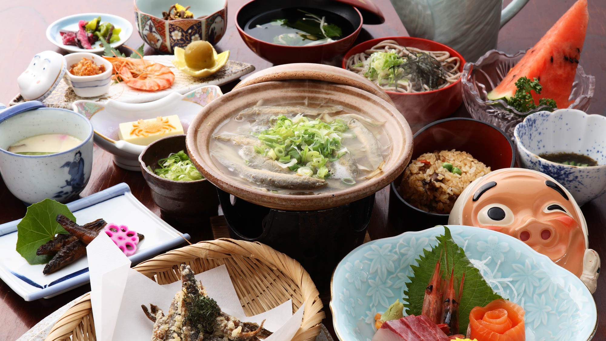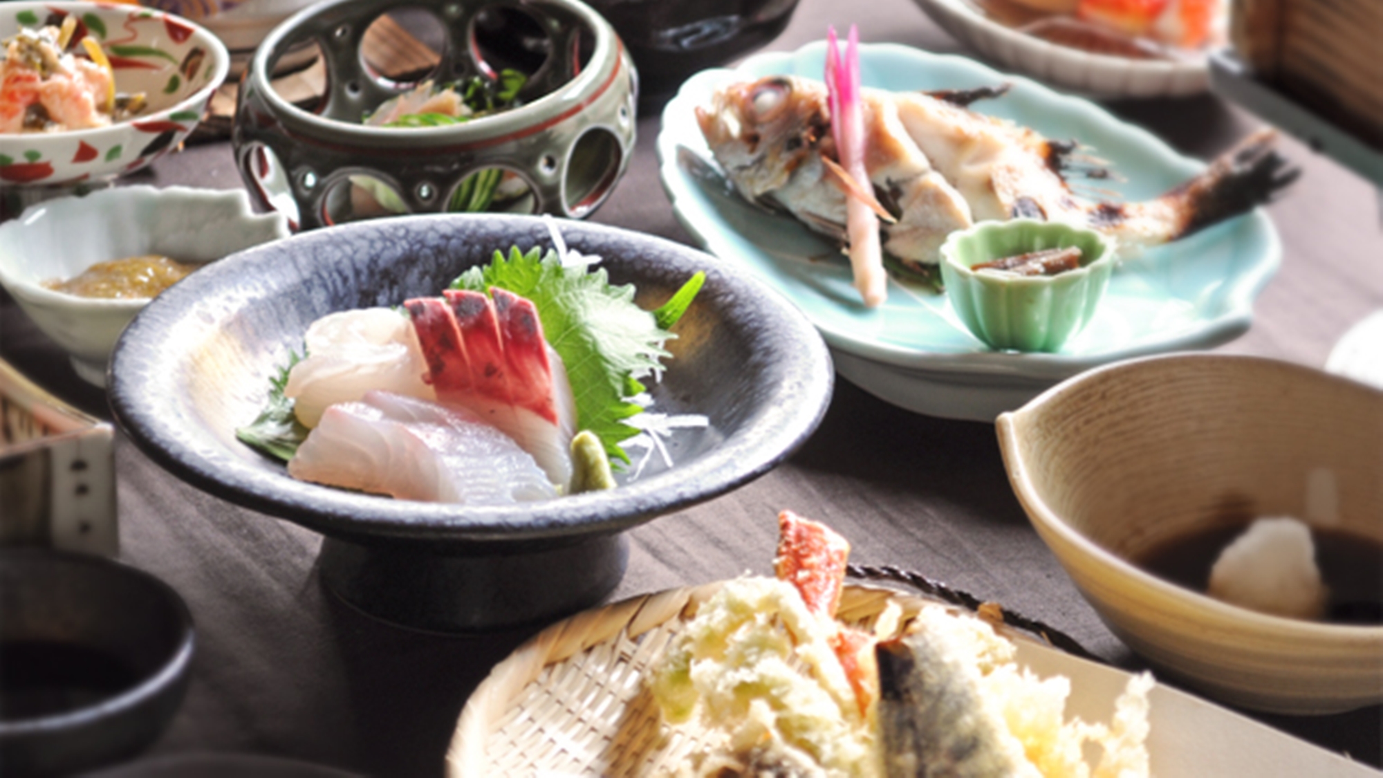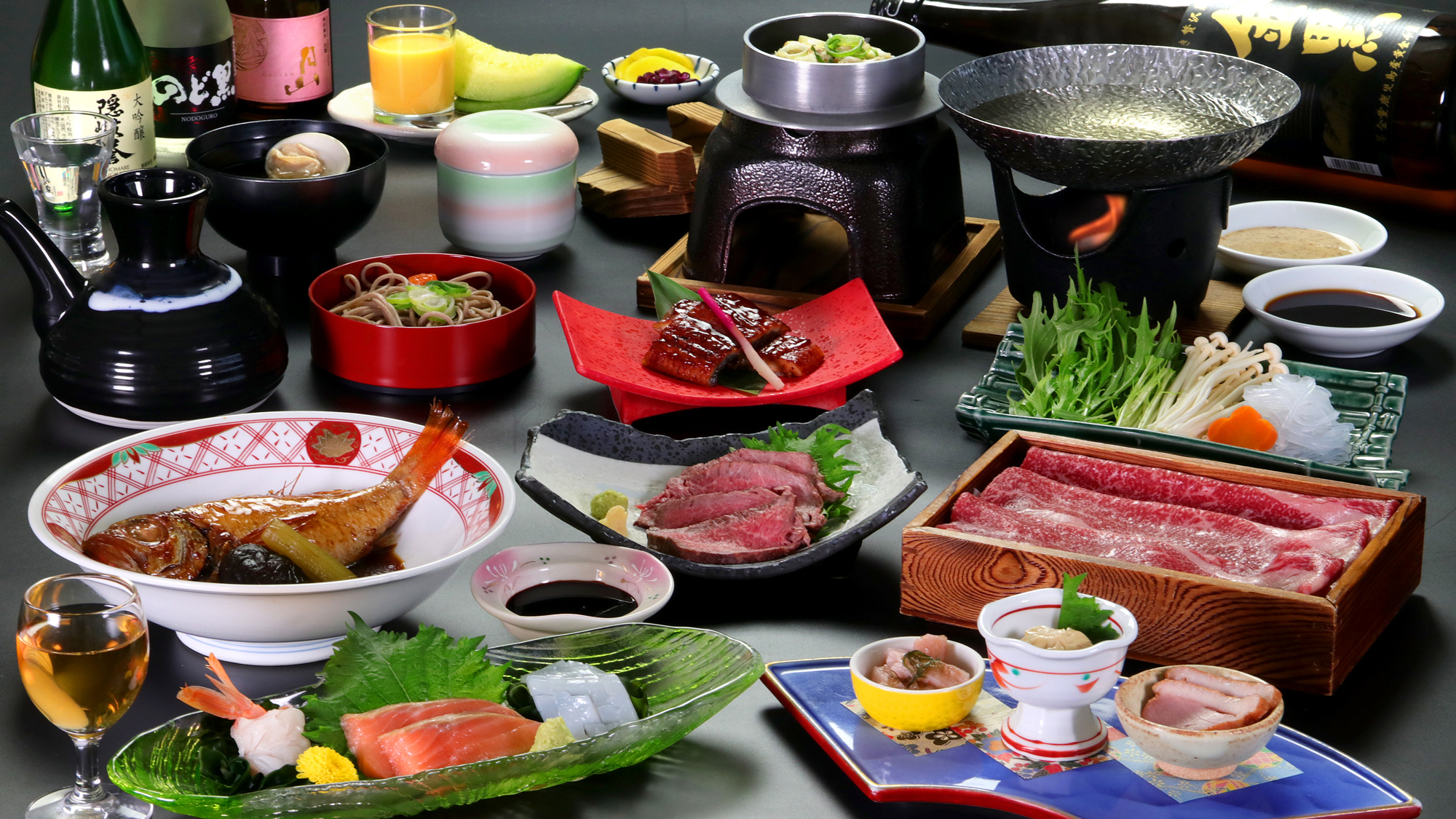 お食事は、日本海の幸、島根の山の幸を厳選した会席料理を寛ぎのプライベート空間でじっくりとお楽しみください。