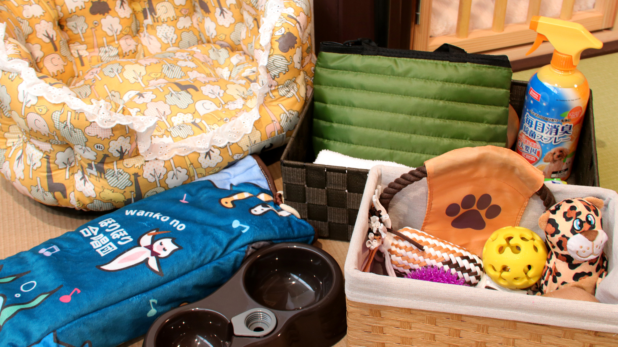 1日1室限定、温泉旅館で一緒にご宿泊いただけるプランでは、ペットはお部屋のみで他の施設には入れませんので、ご移動用ケージを当日ご持参ください。