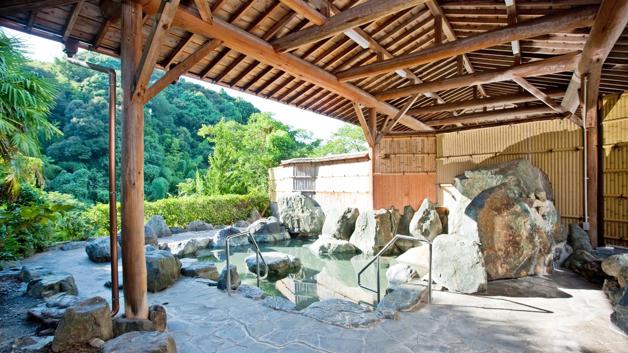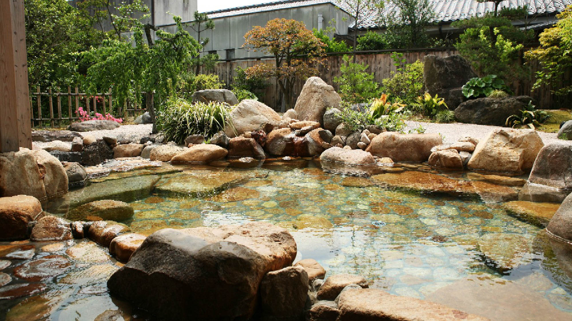 庭園風呂、男湯、女湯、家族風呂を備えます。