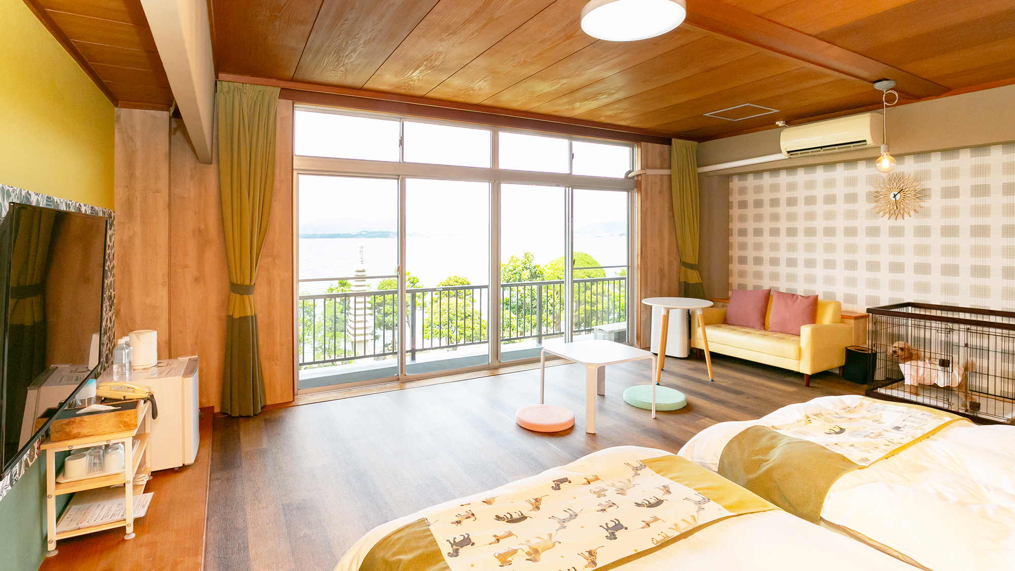 客室にはワンちゃんと触れ合えるテラスを完備し、小型犬であれば同宿することができます🎵