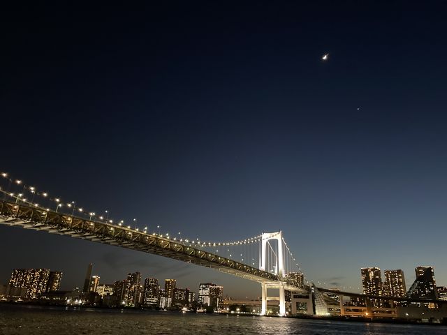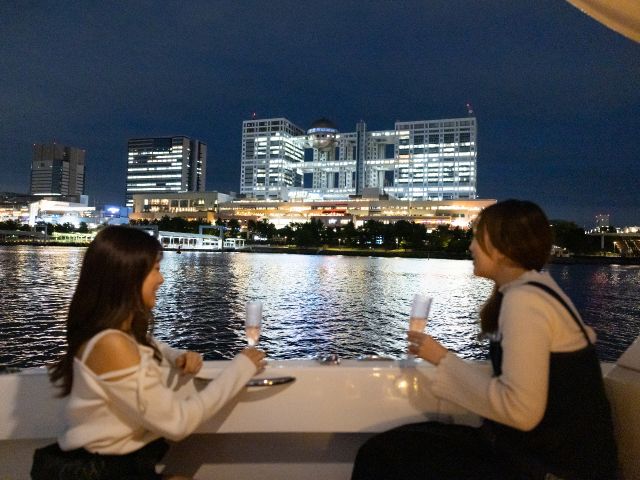 また、日が沈む頃には、スカイツリー、レインボーブリッジ、そしてお台場の幻想的なイルミネーションなど、東京湾に浮かぶ夜景が目の前に広がります!