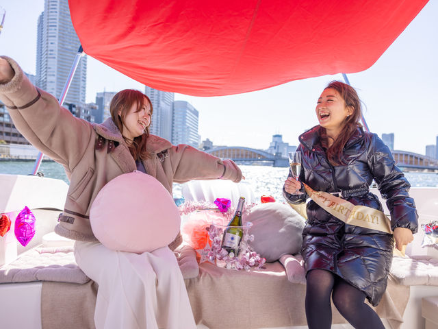 日中は、東京の美しい水辺の景色と広い空をお楽しみいただけ、夜間はライトアップされた隅田川、レインボーブリッジ、お台場、東京タワー、スカイツリーなど、東京の絶景を海上から満喫いただけます🎵