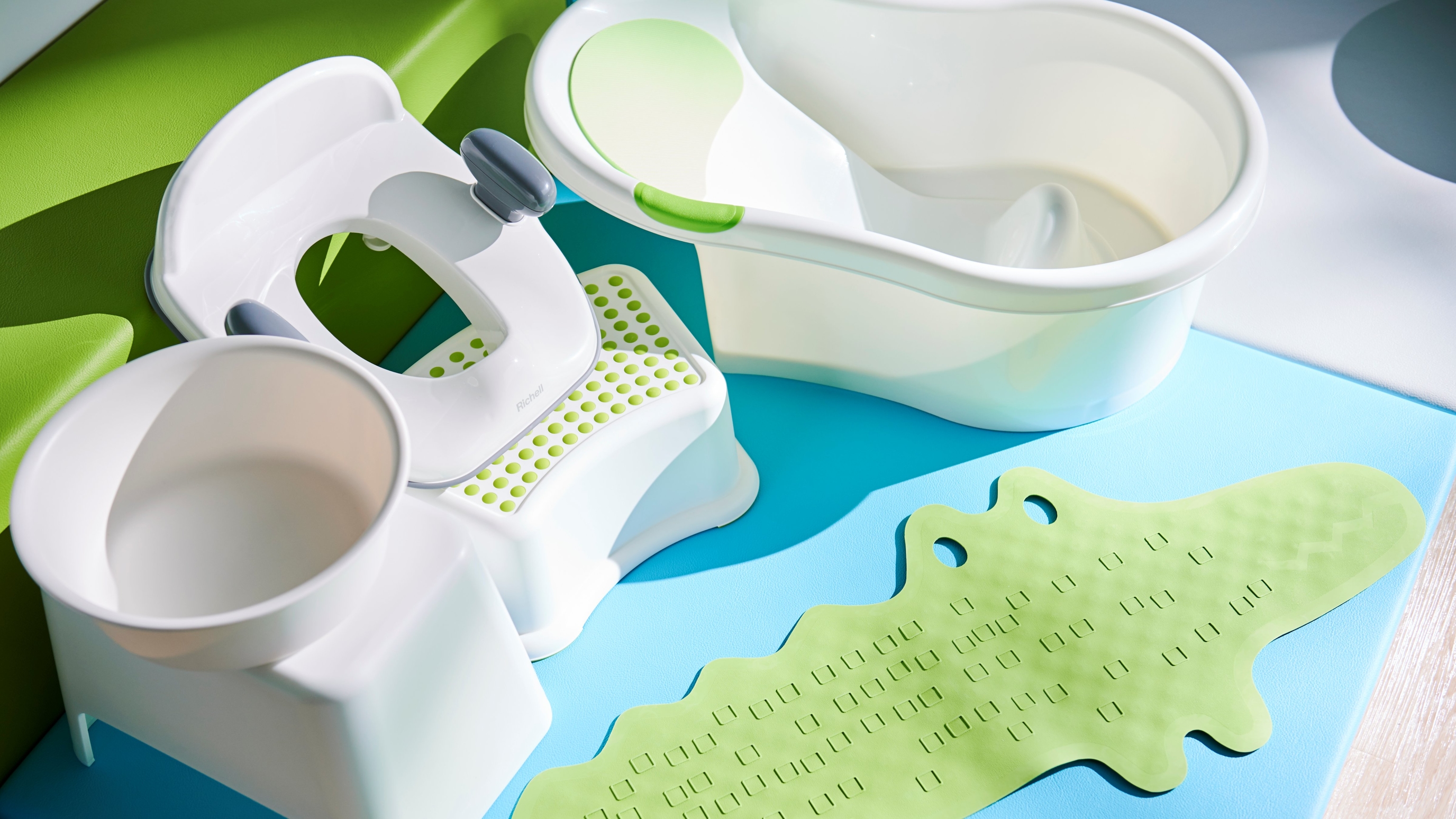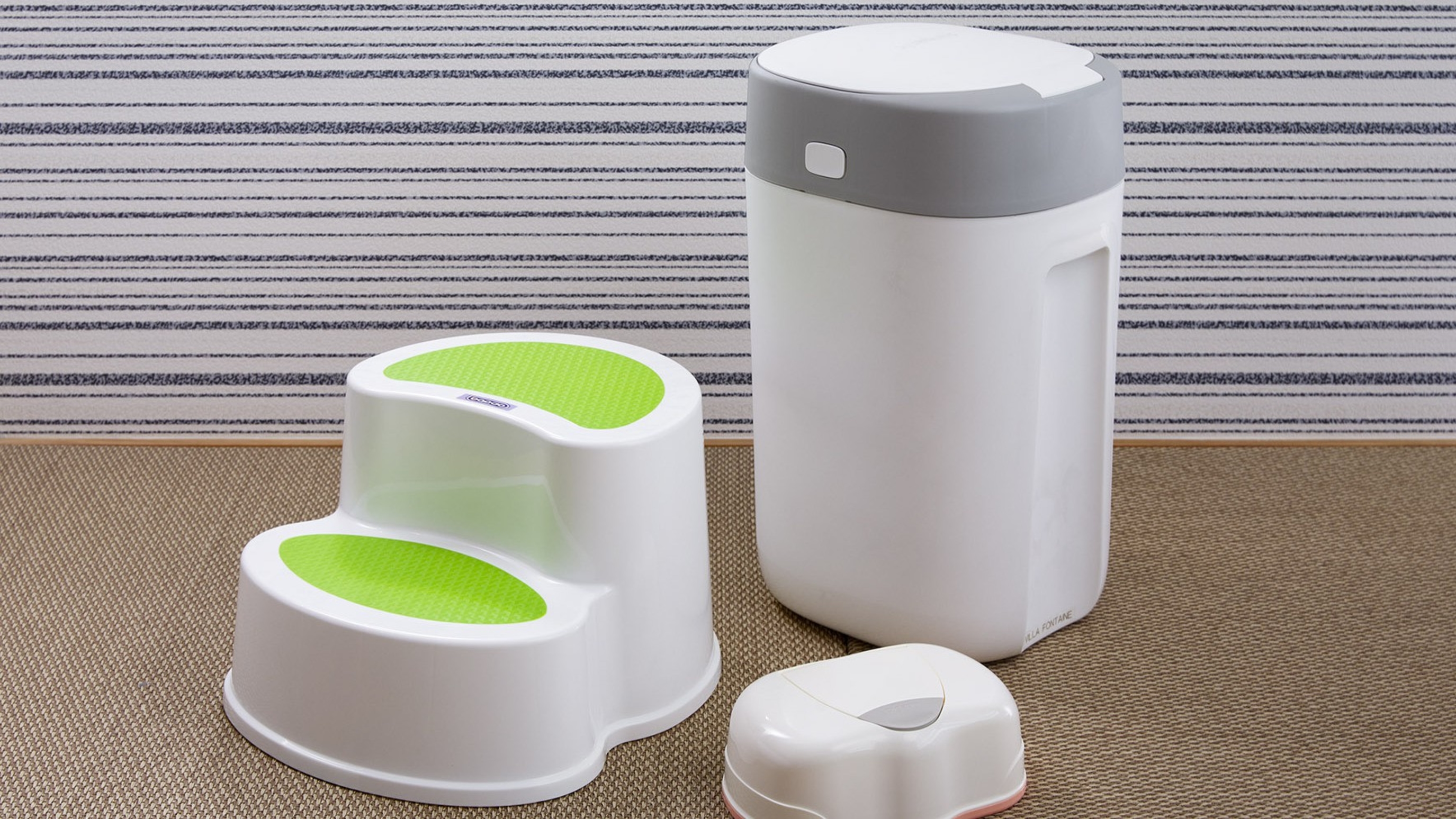 紙おむつ用ごみ箱や、お子さま用便座、ステップ台、ベビーバスなど、赤ちゃんのお世話に必要な備品が揃えられているので安心🎵