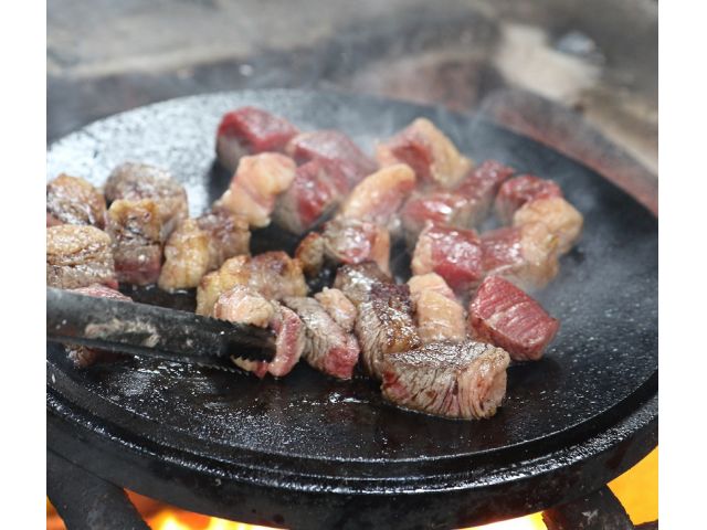 牛ランプステーキをはじめとした肉類や、鉄板で炒めるグリドルライスなどが炭火で楽しめるメニューです!