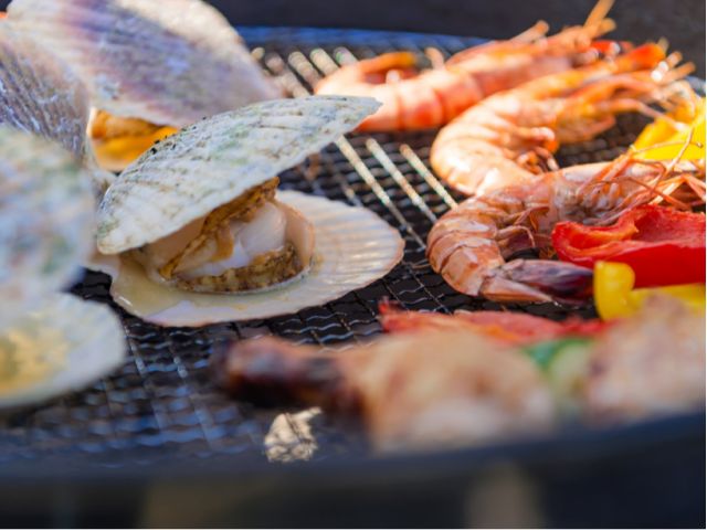 【料金に含まれるもの】 準備・道具(コンロ・炭などBBQ道具一式)皿、箸、食材(牛肉、ソーセージ類、季節の魚介類、野菜、焼きそば等)、後片づけ、施設使用料
