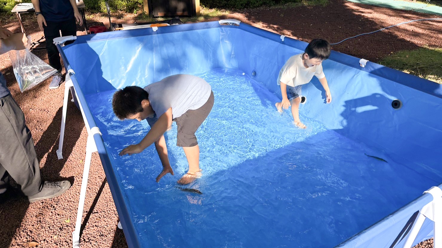 自分の手でお魚をつかみ取りできるアクティビティで、捕まえたお魚はグリルで塩焼きにしてお召し上がりいただけます🎵